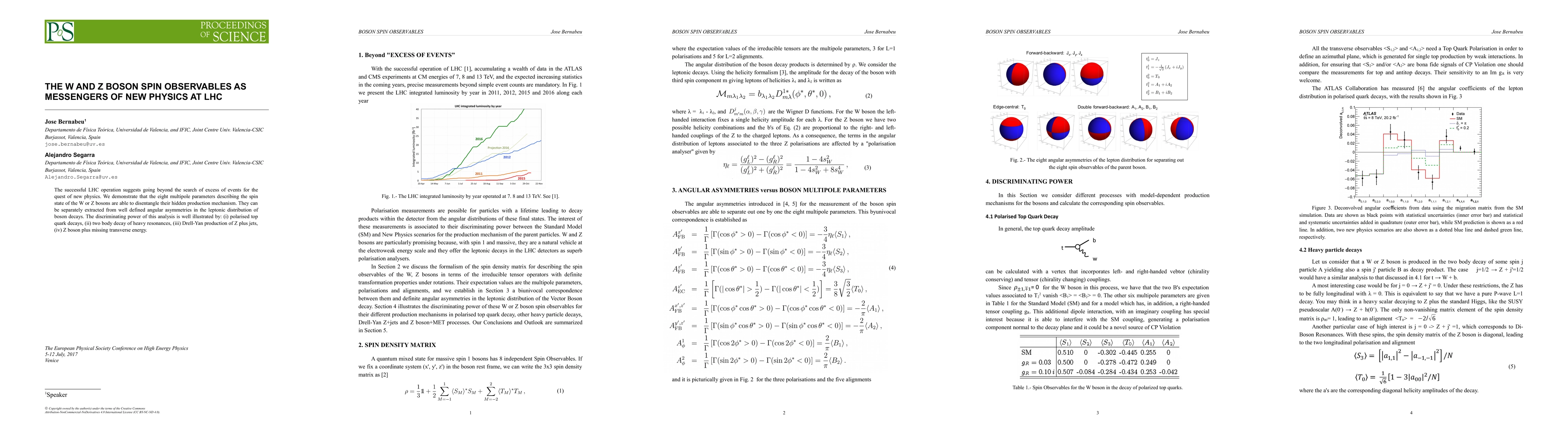 The successful LHC operation suggests going beyond the search of excess of events for the quest of new physics. We demonstrate that the eight multipole parameters describing the spin state of the W or Z bosons are able to disentangle their hidden production mechanism. They can be separately extracted from well defined angular asymmetries in the leptonic distribution of boson decays. The discriminating power of this analysis is well illustrated by: (i) polarised top quark decays, (ii) two body decay of heavy resonances, (iii) Drell-Yan production of Z plus jets, (iv) Z boson plus missing transverse energy.