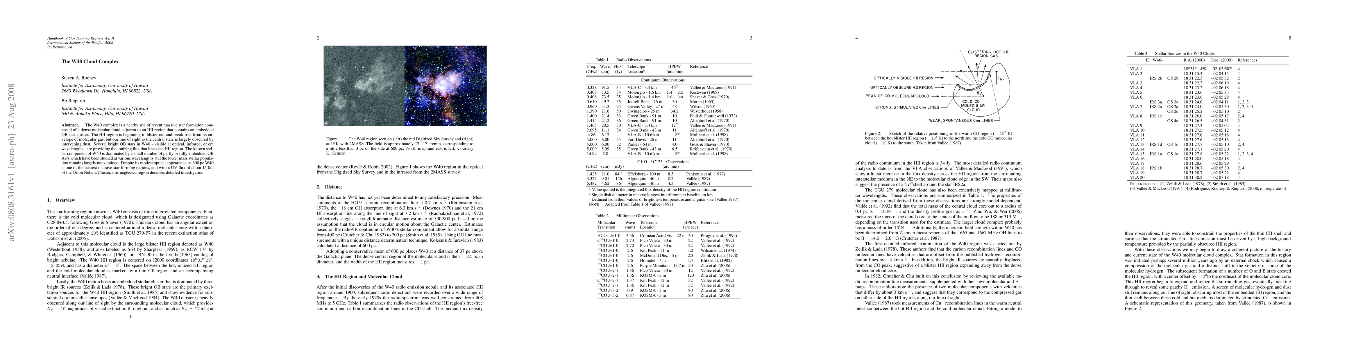 The W40 complex, a nearby site of massive star formation, consists of a dense molecular cloud and an HII region with an OB star cluster. Despite its modest optical appearance, it is one of the nearest regions for such activity, warranting detailed study due to its significant ionizing flux.