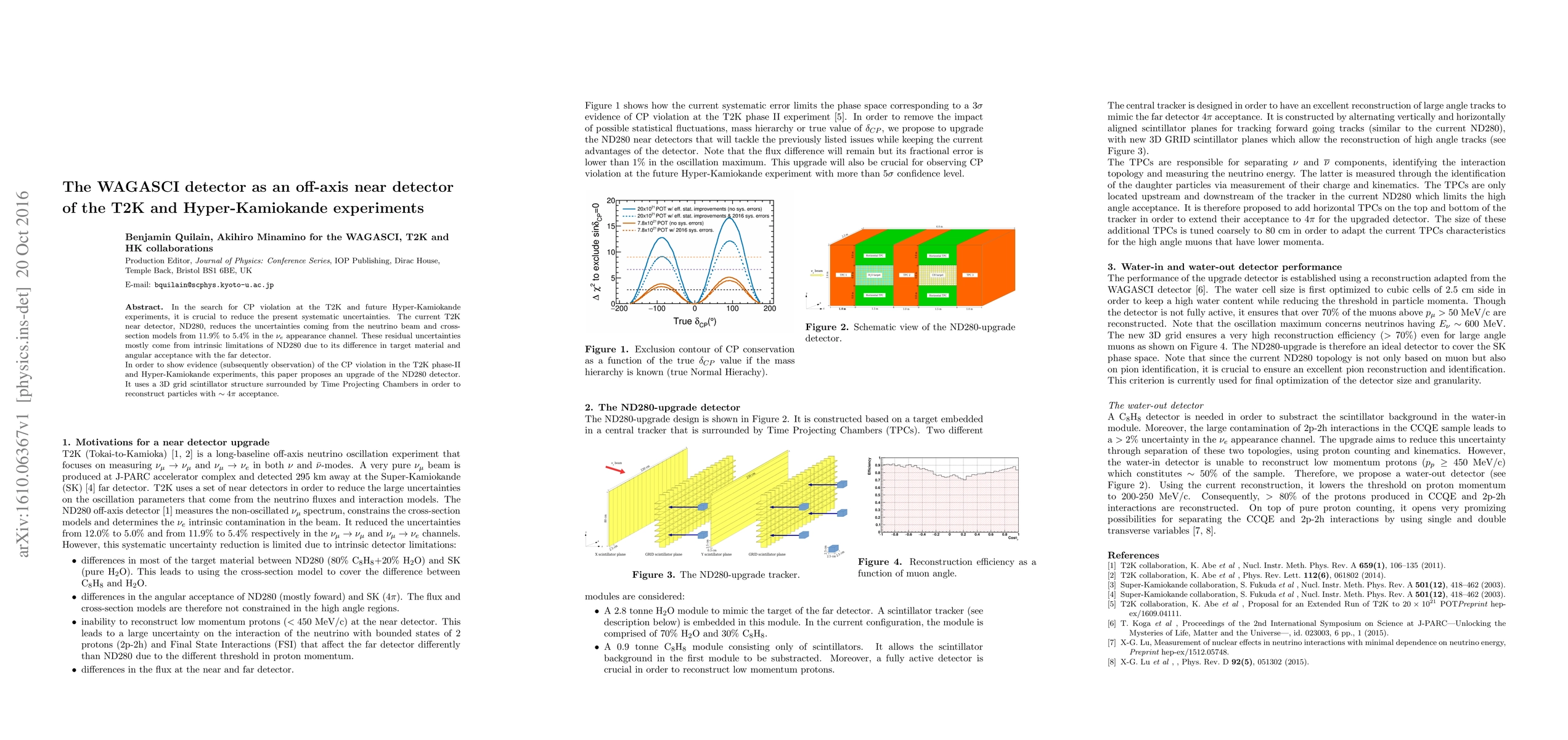 This paper proposes an upgrade of the T2K near detector, ND280, using the WAGASCI detector to reduce systematic uncertainties in CP violation searches. The new design features a 3D grid scintillator structure and Time Projecting Chambers for nearly full angular acceptance, aiming to improve measurements of neutrino interactions.