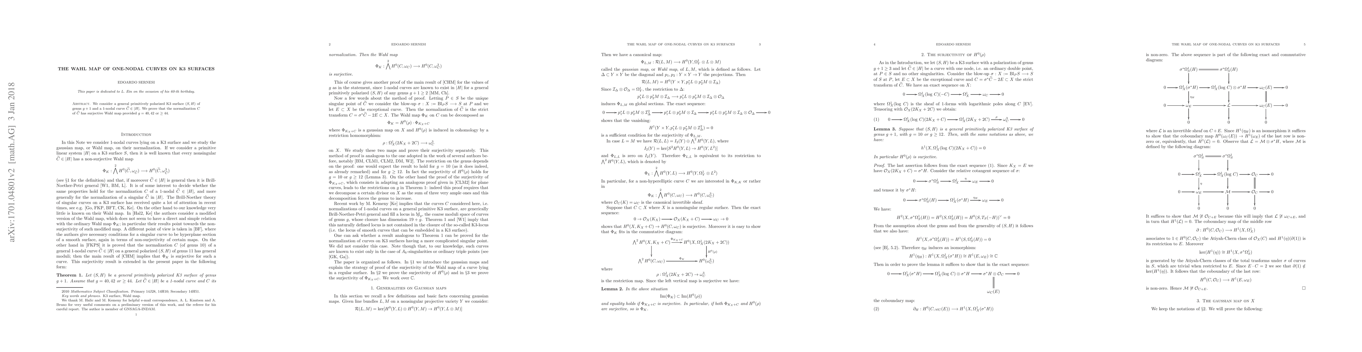 This paper proves that the normalization of a 1-nodal curve on a primitively polarized K3 surface has a surjective Wahl map when the genus of the surface is either 40, 42, or at least 44. The results depend on specific conditions on the genus of the surface.