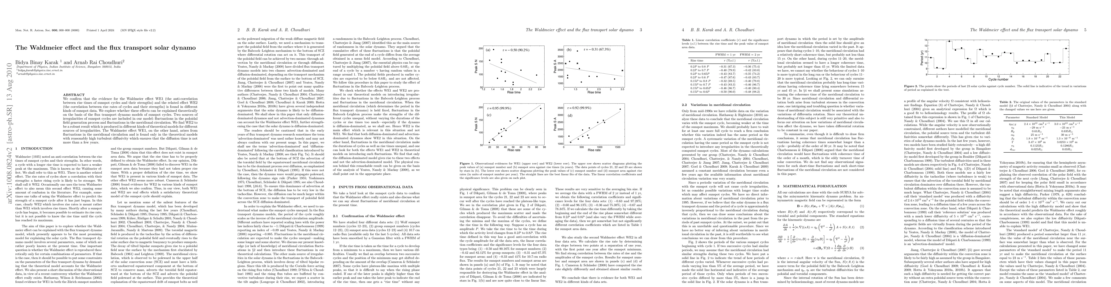 The Waldmeier effect, comprising WE1 and WE2, is confirmed in various sunspot data, with WE2 robustly explained by flux transport dynamo models. WE1 is linked to meridional circulation fluctuations and requires high turbulent diffusivity.
