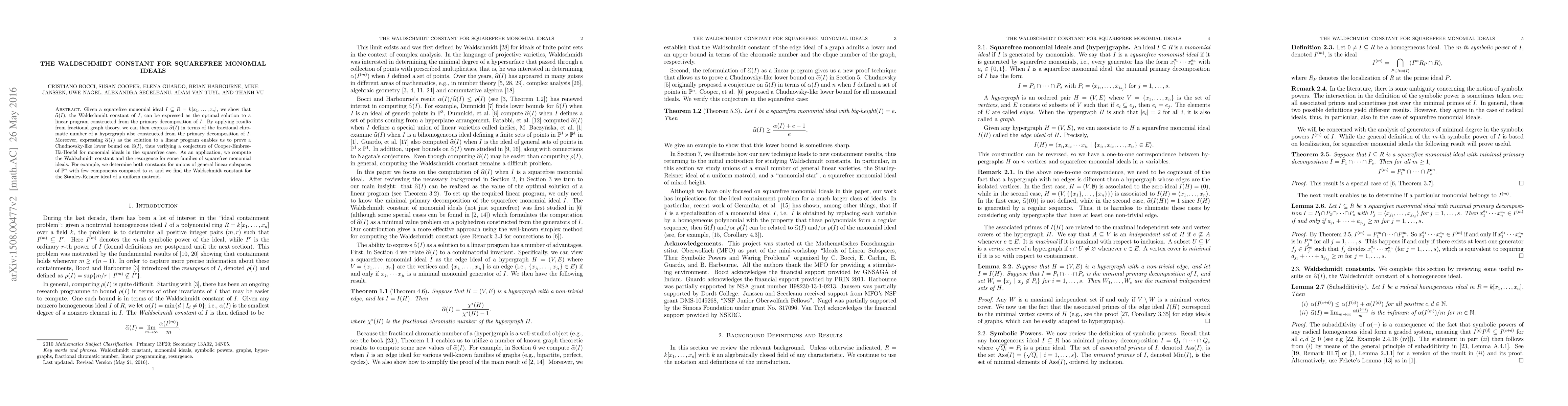 This research shows that the Waldschmidt constant for squarefree monomial ideals can be computed via a linear program based on the primary decomposition of the ideal. It further connects this constant to the fractional chromatic number of a hypergraph derived from the same decomposition, proving a conjecture for a lower bound on the constant and computing the constant for specific families of squarefree monomial ideals.