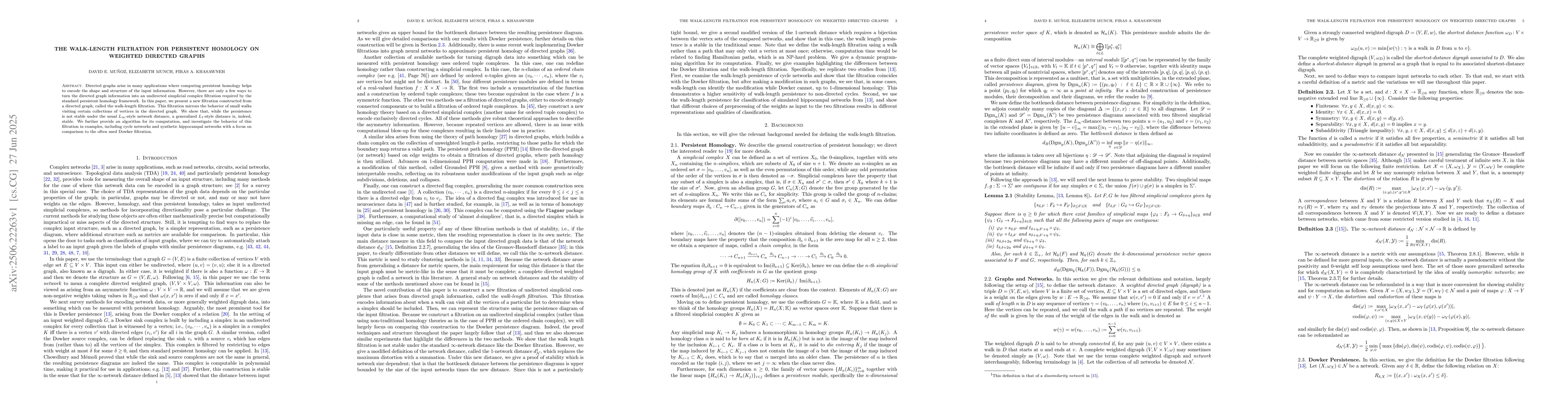 Directed graphs arise in many applications where computing persistent homology helps to encode the shape and structure of the input information. However, there are only a few ways to turn the directed graph information into an undirected simplicial complex filtration required by the standard persistent homology framework. In this paper, we present a new filtration constructed from a directed graph, called the walk-length filtration. This filtration mirrors the behavior of small walks visiting certain collections of vertices in the directed graph. We show that, while the persistence is not stable under the usual $L_\infty$-style network distance, a generalized $L_1$-style distance is, indeed, stable. We further provide an algorithm for its computation, and investigate the behavior of this filtration in examples, including cycle networks and synthetic hippocampal networks with a focus on comparison to the often used Dowker filtration.