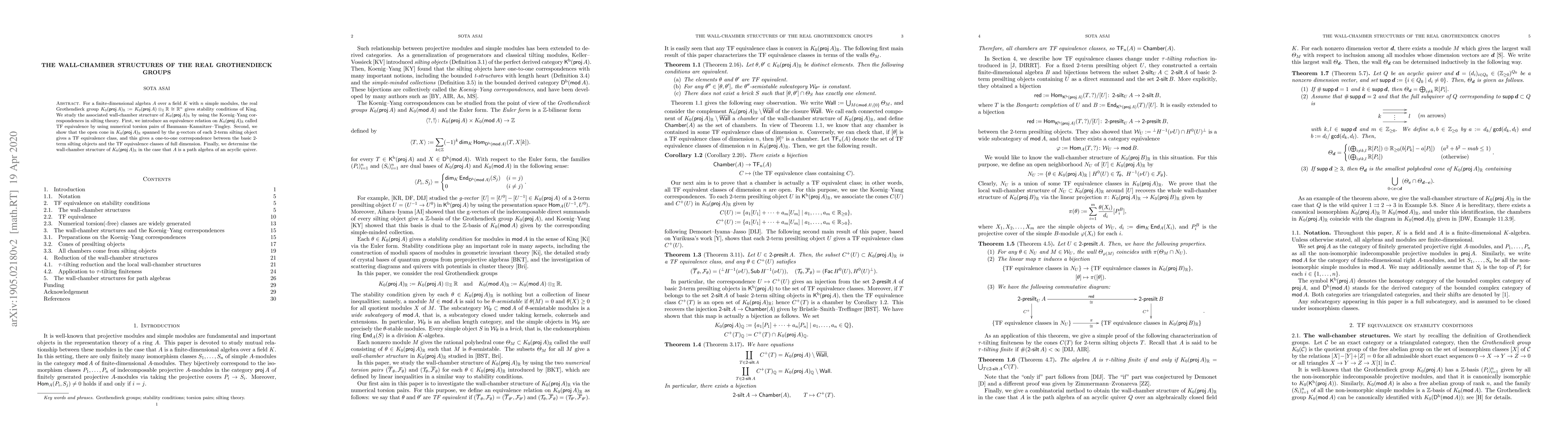 This paper investigates the wall-chamber structure of the real Grothendieck group $K_0(\operatorname{\mathsf{proj}} A)_\mathbb{R}$ for a finite-dimensional algebra $A$, establishing a TF equivalence relation and demonstrating a correspondence between 2-term silting objects and full-dimensional TF equivalence classes. The wall-chamber structure is specifically determined for path algebras of acyclic quivers.