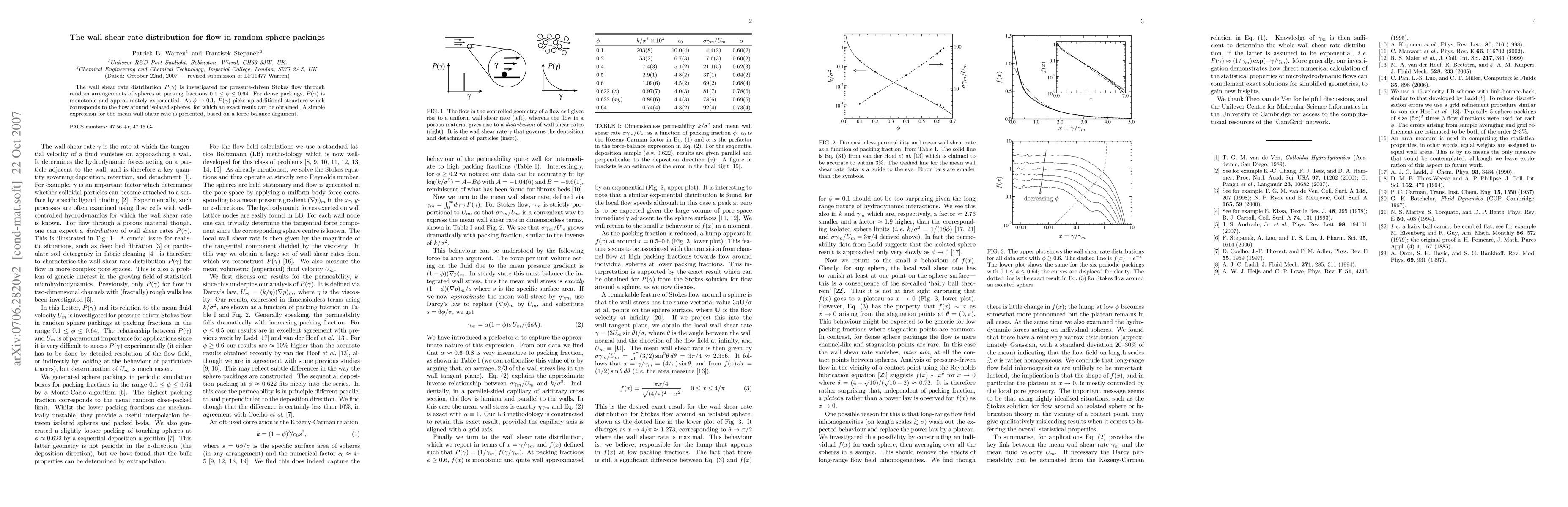 This study investigates the wall shear rate distribution for pressure-driven Stokes flow through random sphere packings, revealing a monotonic and exponential distribution for dense packings. As packing fractions decrease, additional structure emerges corresponding to flow around isolated spheres, with a simple expression for the mean wall shear rate derived from a force-balance argument.