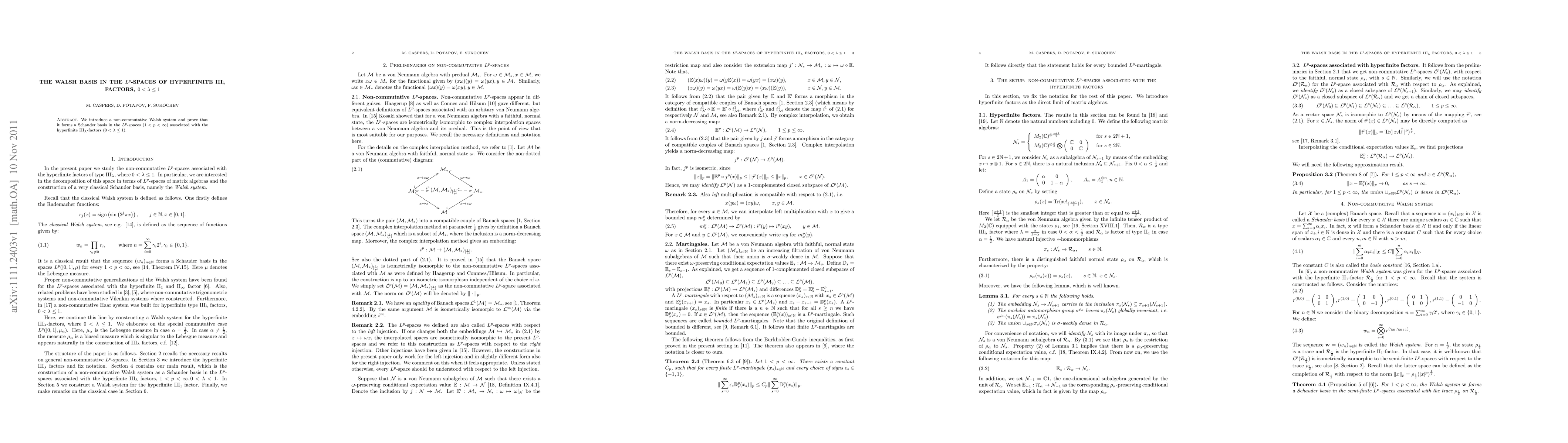 We introduce a non-commutative Walsh system and prove that it forms a Schauder basis in the Lp-spaces (1 < p < \infty) associated with the hyperfinite III_\lambda-factors (0 < \lambda <= 1).
