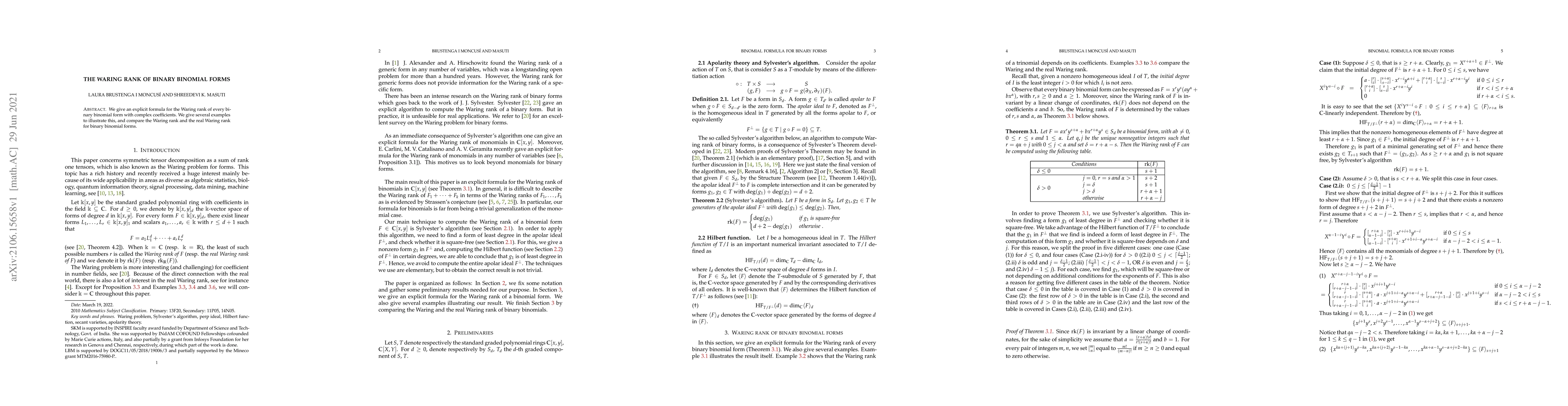 Summary: This paper provides an explicit formula for the Waring rank of binary binomial forms with complex coefficients, offering examples to illustrate the method and comparing it with the real Waring rank for these forms.