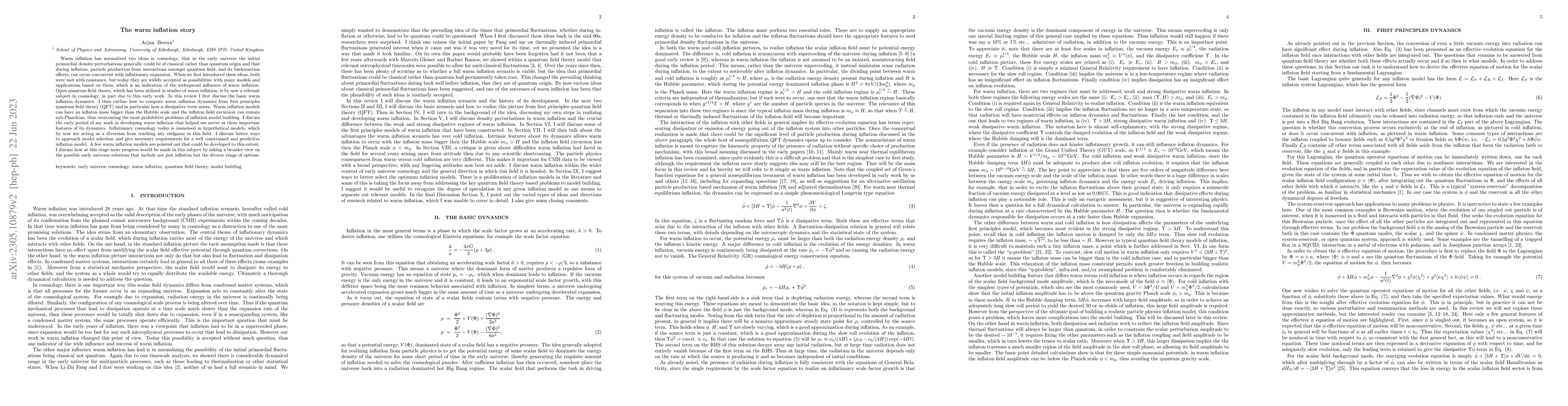 Warm inflation has normalized two ideas in cosmology, that in the early universe the initial primordial density perturbations generally could be of classical rather than quantum origin and that during inflation, particle production from interactions amongst quantum field, and its backreaction effects, can occur concurrent with inflationary expansion. When we first introduced these ideas, both were met with resistance, but today they are widely accepted as possibilities with many models and applications based on them, which is an indication of the widespread influence of warm inflation. Open quantum field theory, which has been utilized in studies of warm inflation, is by now a relevant subject in cosmology, in part due to this early work. In this review I first discuss the basic warm inflation dynamics. I then outline how to compute warm inflation dynamics from first principles quantum field theory (QFT) and in particular how a dissipative term arises. Warm inflation models can have an inflaton mass bigger than the Hubble scale and the inflaton field excursion can remain sub-Planckian, thus overcoming the most prohibitive problems of inflation model building. I discuss the early period of my work in developing warm inflation that helped me arrive at these important features of its dynamics. Inflationary cosmology today is immersed in hypothetical models, which by now are acting as a diversion from reaching any endgame in this field. I discuss better ways to approach model selection and give necessary requirements for a well constrained and predictive inflation model. A few warm inflation models are pointed out that could be developed to this extent. I discuss how at this stage more progress would be made in this subject by taking a broader view on the possible early universe solutions that include not just inflation but the diverse range of options.