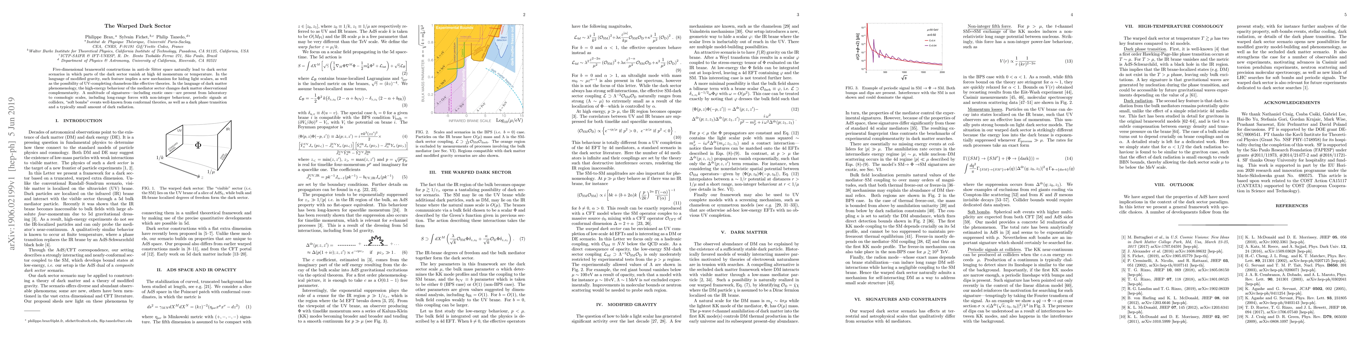 Five-dimensional braneworld constructions in anti-de Sitter space naturally lead to dark sector scenarios in which parts of the dark sector vanish at high 4d momentum or temperature. In the language of modified gravity, such feature implies a new mechanism for hiding light scalars, as well as the possibility of UV-completing chameleon-like effective theories. In the language of dark matter phenomenology, the high-energy behaviour of the mediator sector changes dark matter observational complementarity. A multitude of signatures---including exotic ones---are present from laboratory to cosmologic scales, including long-range forces with non-integer behaviour, periodic signals at colliders, `soft bombs' events well-known from conformal theories, as well as a dark phase transition and a typically small amount of dark radiation.