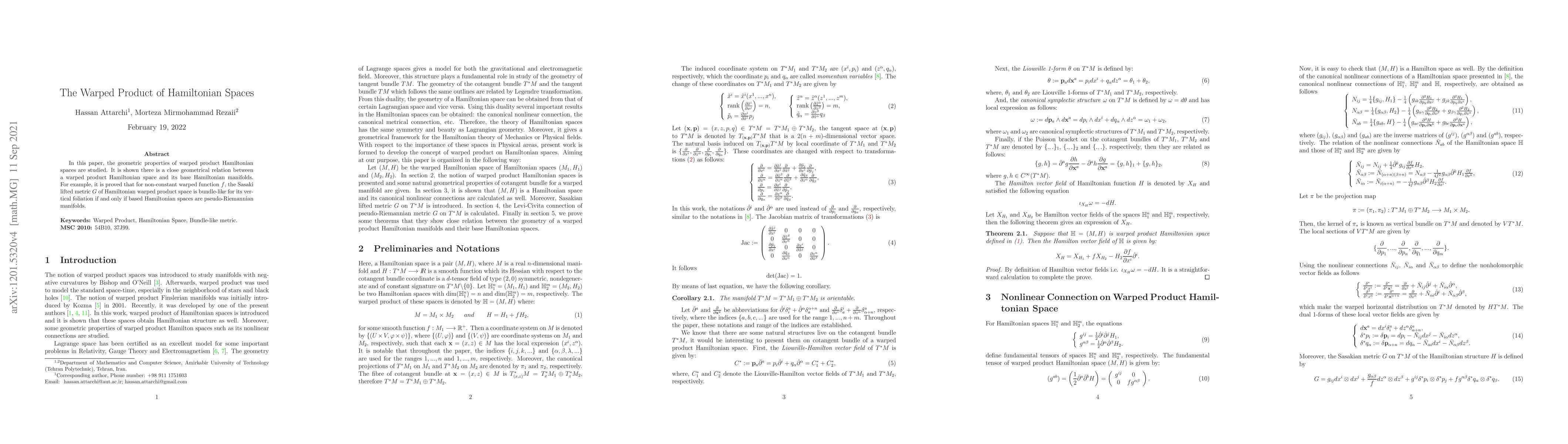 The research used a combination of theoretical and computational methods to analyze the geometric properties of warped product Hamiltonian spaces.