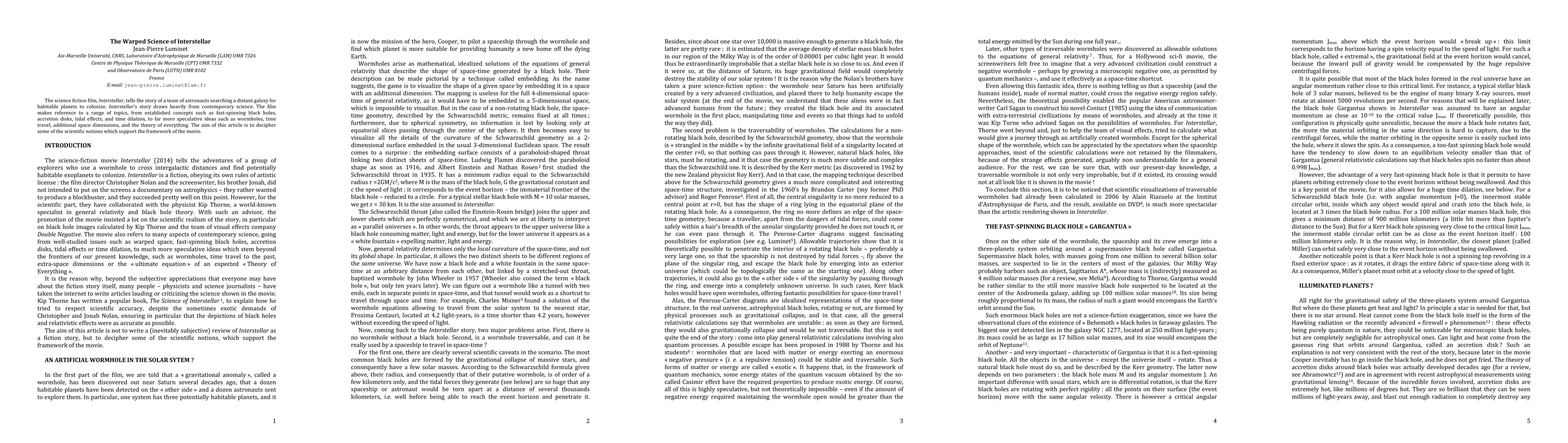 Interstellar's narrative integrates established scientific concepts like black holes, time dilation, and speculative ideas such as wormholes and additional dimensions. This paper aims to elucidate these scientific underpinnings in the film.