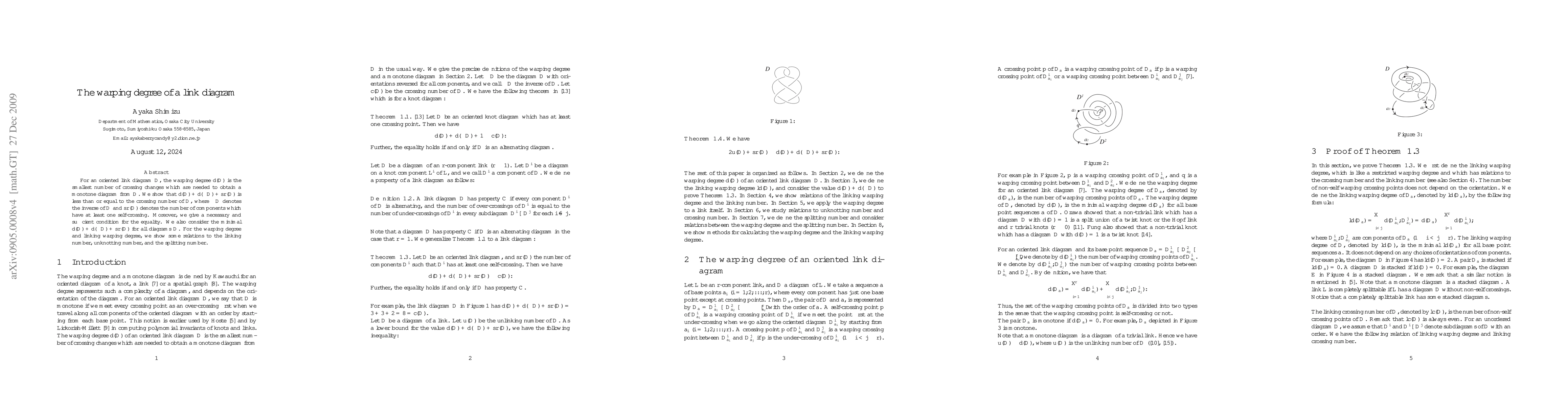 The paper introduces the concept of the warping degree of an oriented link diagram, denoted as d(D), and explores its relationships with other link invariants such as the crossing number, unknotting number, and splitting number.