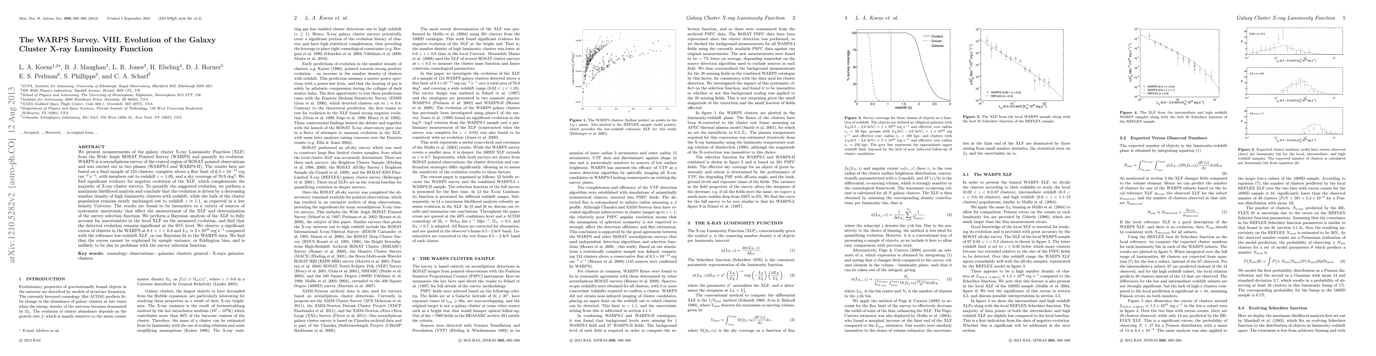 The research utilized the Wide Angle ROSAT Pointed Survey (WARPS) data, consisting of two phases (WARPS-I and WARPS-II), to measure the galaxy cluster X-ray Luminosity Function (XLF) and quantify its evolution. The study is based on a final sample of 124 clusters, complete above a flux limit of 6.5 10E-15 erg/s/cm2, with members out to redshift z ~ 1.05, and covers 70.9 deg2.