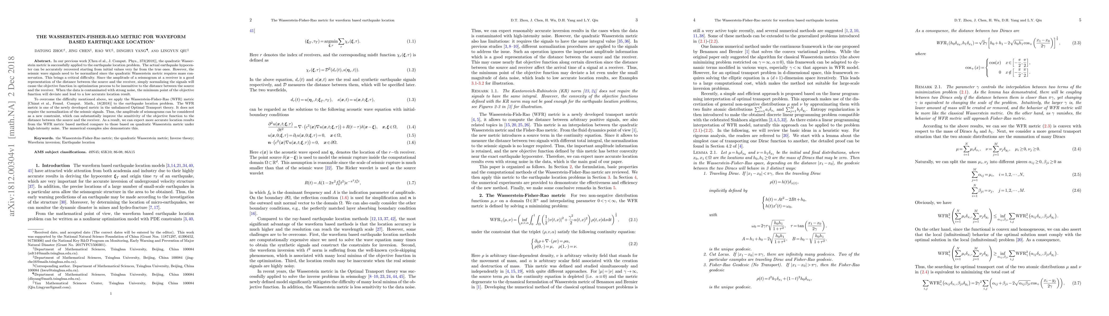 The paper introduces and applies the Wasserstein-Fisher-Rao metric to earthquake location problems, providing a novel approach that does not require signal normalization and retains amplitude information for improved accuracy.