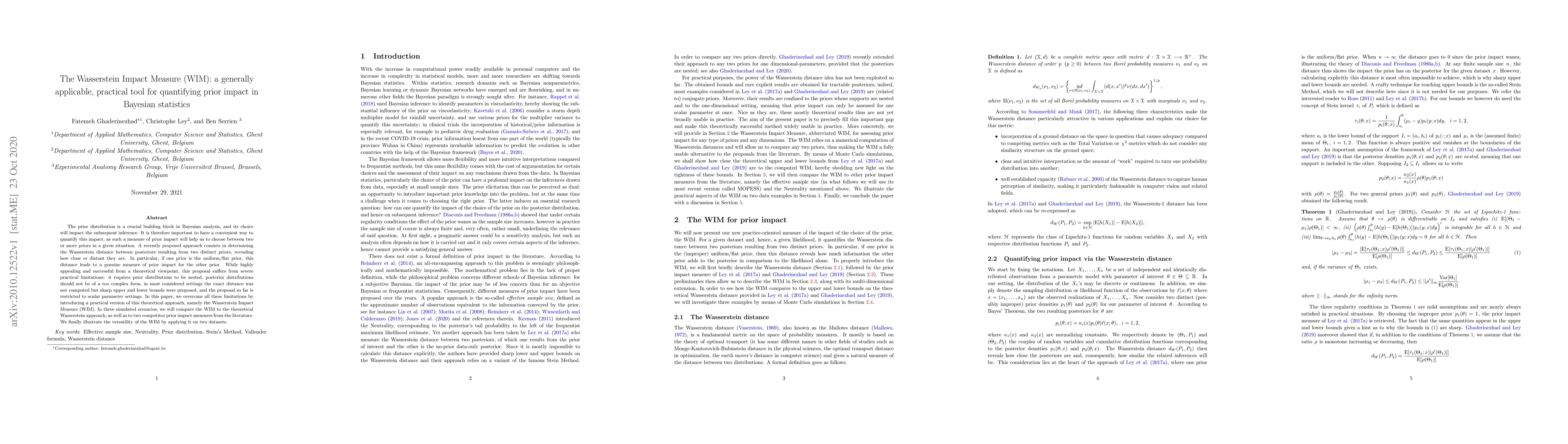 The prior distribution is a crucial building block in Bayesian analysis, and its choice will impact the subsequent inference. It is therefore important to have a convenient way to quantify this impact, as such a measure of prior impact will help us to choose between two or more priors in a given situation. A recently proposed approach consists in determining the Wasserstein distance between posteriors resulting from two distinct priors, revealing how close or distant they are. In particular, if one prior is the uniform/flat prior, this distance leads to a genuine measure of prior impact for the other prior. While highly appealing and successful from a theoretical viewpoint, this proposal suffers from practical limitations: it requires prior distributions to be nested, posterior distributions should not be of a too complex form, in most considered settings the exact distance was not computed but sharp upper and lower bounds were proposed, and the proposal so far is restricted to scalar parameter settings. In this paper, we overcome all these limitations by introducing a practical version of this theoretical approach, namely the Wasserstein Impact Measure (WIM). In three simulated scenarios, we will compare the WIM to the theoretical Wasserstein approach, as well as to two competitor prior impact measures from the literature. We finally illustrate the versatility of the WIM by applying it on two datasets.