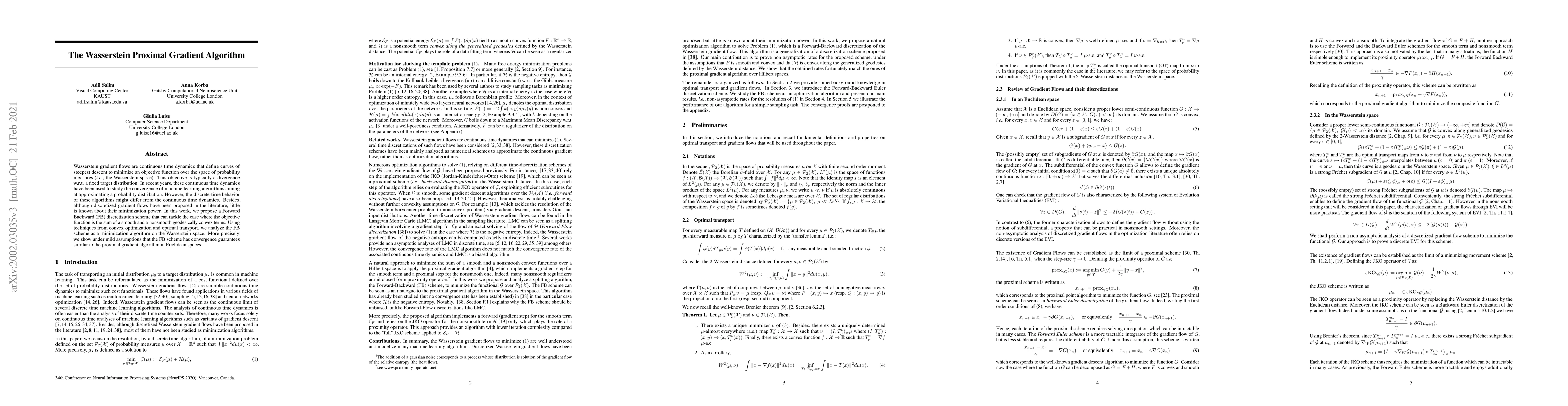 This paper proposes a Forward Backward discretization scheme for Wasserstein gradient flows to minimize objective functions in the Wasserstein space, combining smooth and nonsmooth geodesically convex terms. The authors demonstrate that this scheme has convergence guarantees comparable to the proximal gradient algorithm in Euclidean spaces.