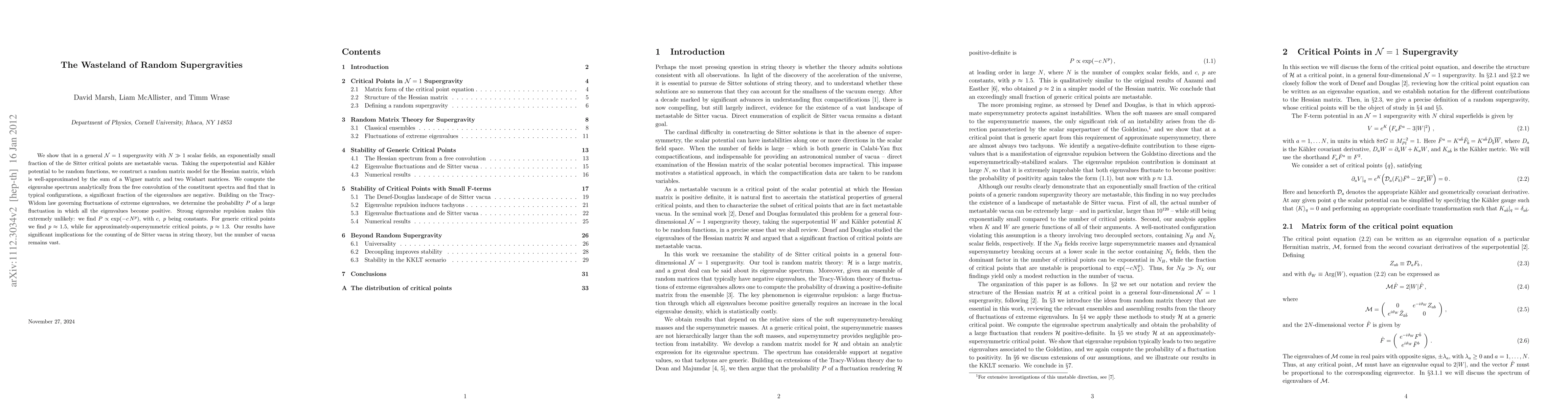 We show that in a general \cal{N} = 1 supergravity with N \gg 1 scalar fields, an exponentially small fraction of the de Sitter critical points are metastable vacua. Taking the superpotential and Kahler potential to be random functions, we construct a random matrix model for the Hessian matrix, which is well-approximated by the sum of a Wigner matrix and two Wishart matrices. We compute the eigenvalue spectrum analytically from the free convolution of the constituent spectra and find that in typical configurations, a significant fraction of the eigenvalues are negative. Building on the Tracy-Widom law governing fluctuations of extreme eigenvalues, we determine the probability P of a large fluctuation in which all the eigenvalues become positive. Strong eigenvalue repulsion makes this extremely unlikely: we find P \propto exp(-c N^p), with c, p being constants. For generic critical points we find p \approx 1.5, while for approximately-supersymmetric critical points, p \approx 1.3. Our results have significant implications for the counting of de Sitter vacua in string theory, but the number of vacua remains vast.
