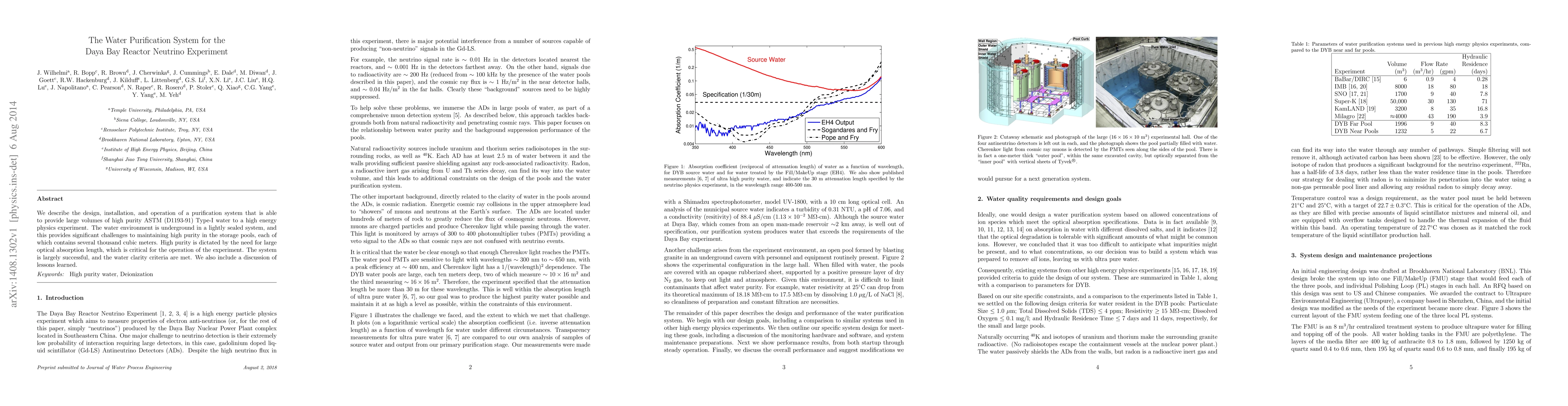 Researchers developed a water purification system to maintain high purity for a neutrino experiment at Daya Bay Reactor. The system successfully met the water clarity criteria, providing large volumes of high-quality water.