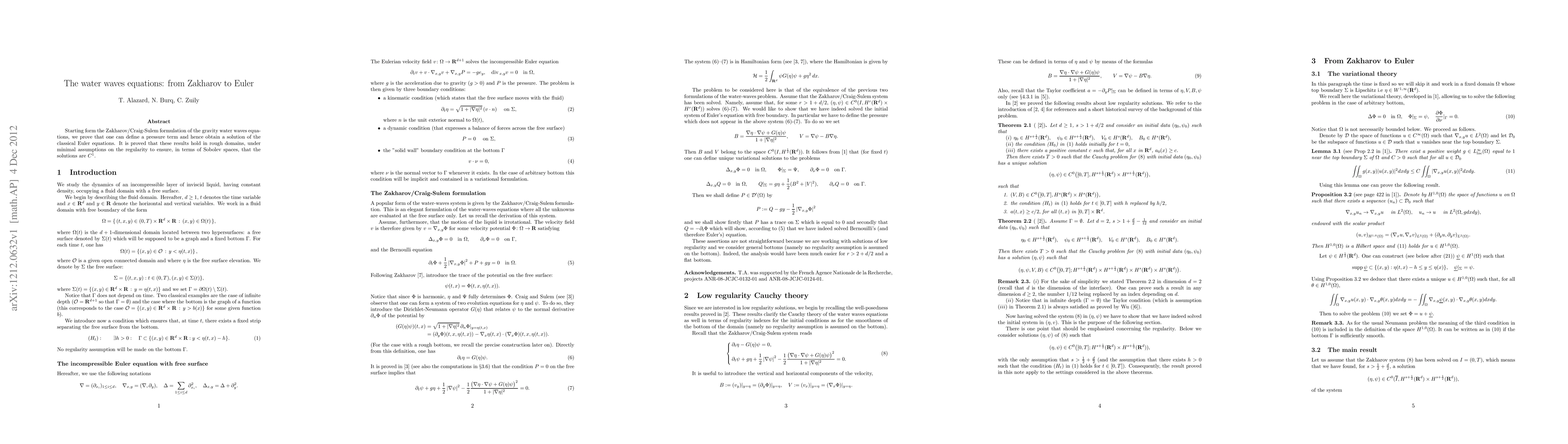 This paper demonstrates how to derive a pressure term from the Zakharov/Craig-Sulem water-waves equations, leading to solutions of the classical Euler equations. It extends these results to rough domains with minimal regularity assumptions, ensuring $C^1$ solutions in Sobolev spaces.