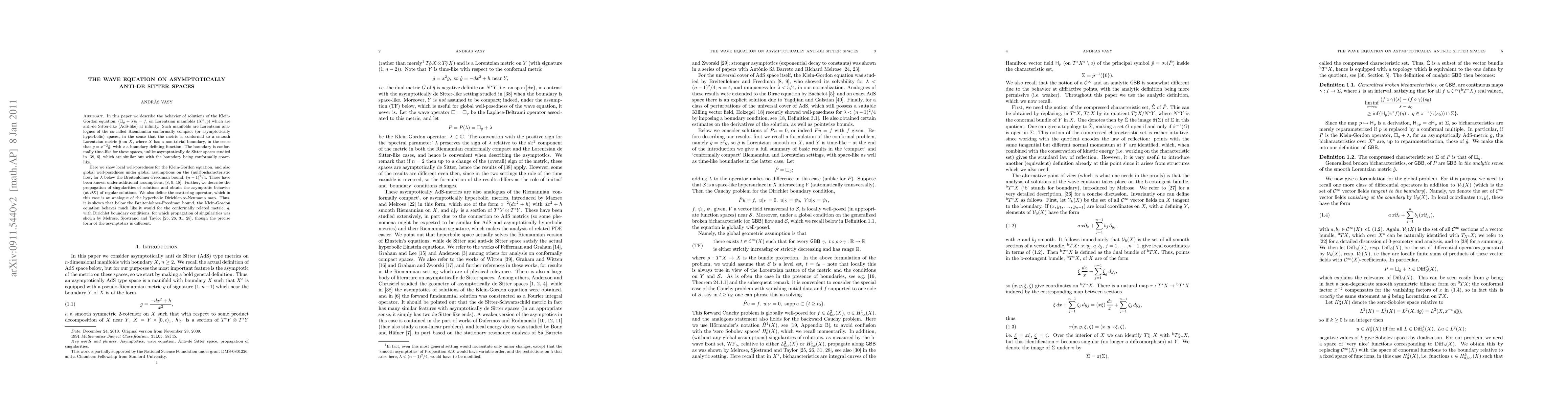 This paper investigates the Klein-Gordon equation on asymptotically Anti-de Sitter spaces, proving local and global well-posedness under specific conditions. It also explores the propagation of singularities and defines a scattering operator analogous to the hyperbolic Dirichlet-to-Neumann map.