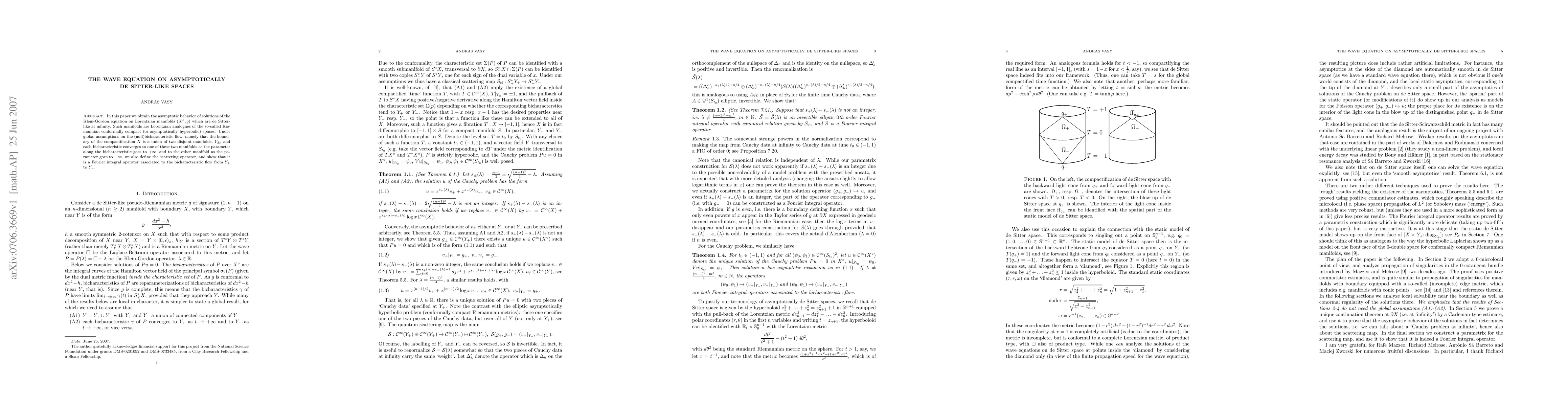 Researchers investigated the wave equation on spaces that resemble de Sitter-like geometries at infinity. They found that a scattering operator related to the flow of bicharacteristics can be expressed as a Fourier integral operator.