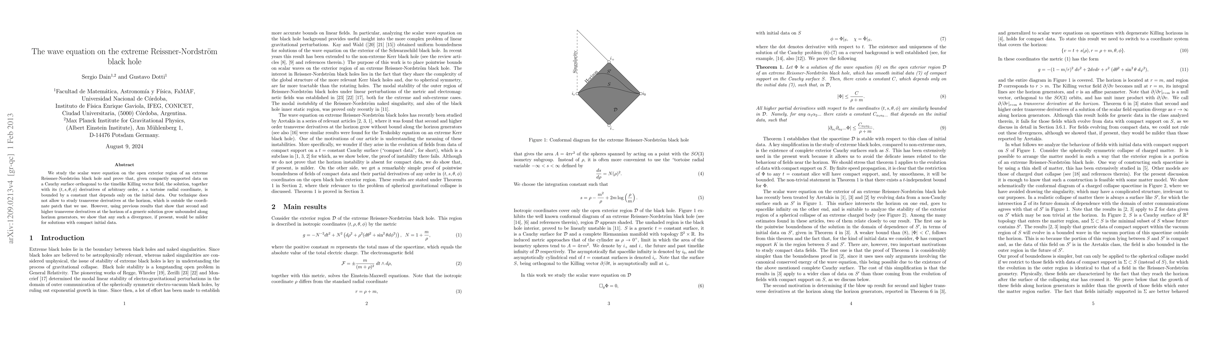 We study the scalar wave equation on the open exterior region of an extreme Reissner-Nordstr\"om black hole and prove that, given compactly supported data on a Cauchy surface orthogonal to the timelike Killing vector field, the solution, together with its $(t,s,\theta,\phi)$ derivatives of arbitrary order, $s$ a tortoise radial coordinate, is bounded by a constant that depends only on the initial data. Our technique does not allow to study transverse derivatives at the horizon, which is outside the coordinate patch that we use. However, using previous results that show that second and higher transverse derivatives at the horizon of a generic solution grow unbounded along horizon generators, we show that any such a divergence, if present, would be milder for solutions with compact initial data.