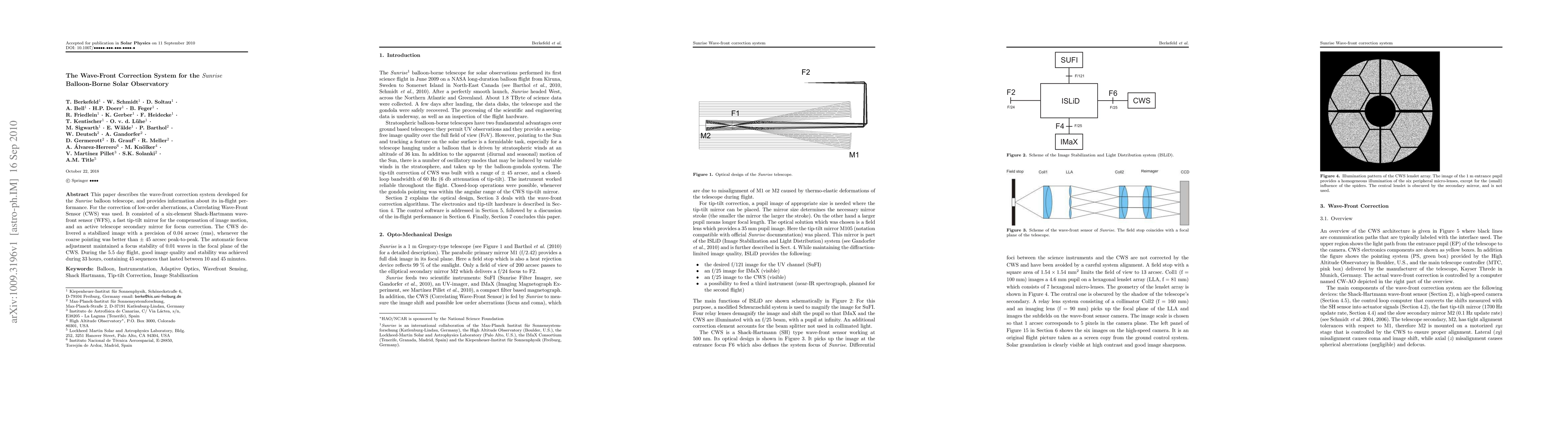 A wave-front correction system was developed for a balloon-borne solar telescope, achieving stable image quality with precision of 0.04 arcsec during 33 hours of flight.