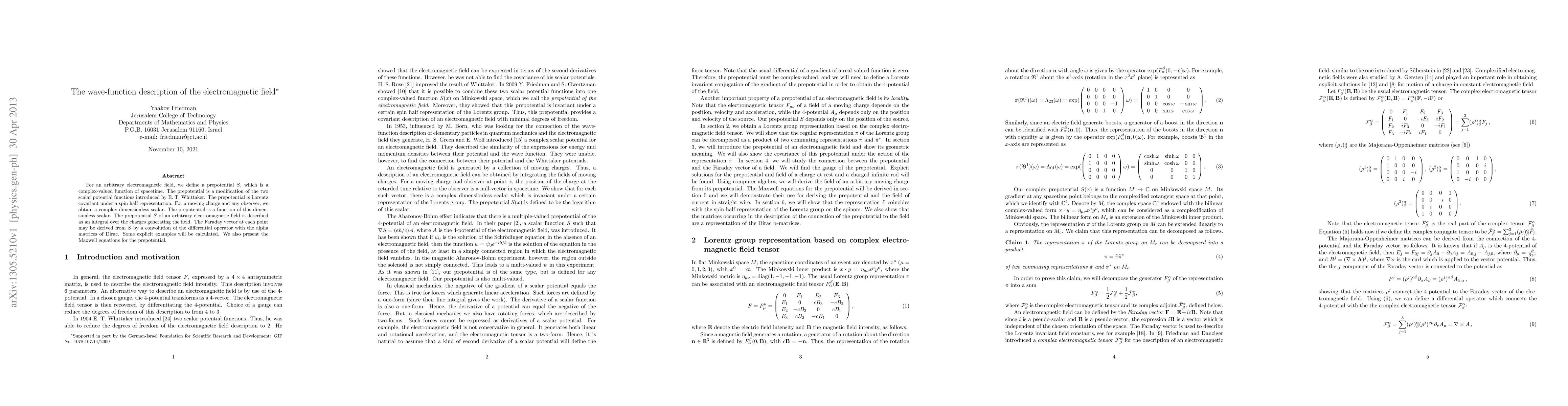 The research paper introduces a new approach to describing the electromagnetic field using a complex-valued function called the prepotential, which is derived from the charges generating the field and provides a new way to derive the Faraday vector.