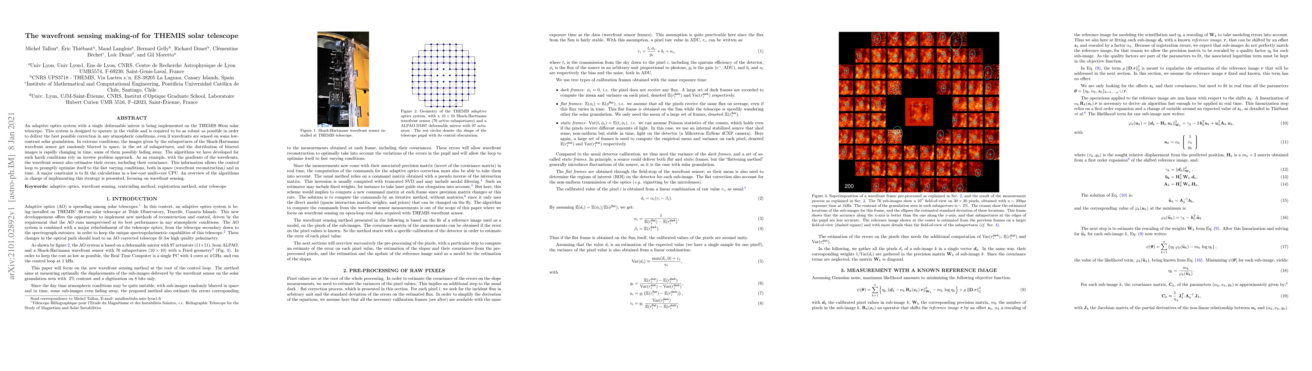 An adaptive optics system with a single deformable mirror is being implemented on the THEMIS 90cm solar telescope. This system is designed to operate in the visible and is required to be as robust as possible in order to deliver the best possible correction in any atmospheric conditions, even if wavefronts are sensed on some low-contrast solar granulation. In extreme conditions, the images given by the subapertures of the Shack-Hartmann wavefront sensor get randomly blurred in space, in the set of subapertures, and the distribution of blurred images is rapidly changing in time, some of them possibly fading away. The algorithms we have developed for such harsh conditions rely on inverse problem approach. As an example, with the gradients of the wavefronts, the wavefront sensor also estimates their errors, including their covariance. This information allows the control loop to promptly optimize itself to the fast varying conditions, both in space (wavefront reconstruction) and in time. A major constraint is to fit the calculations in a low-cost multi-core CPU. An overview of the algorithms in charge of implementing this strategy is presented, focusing on wavefront sensing.