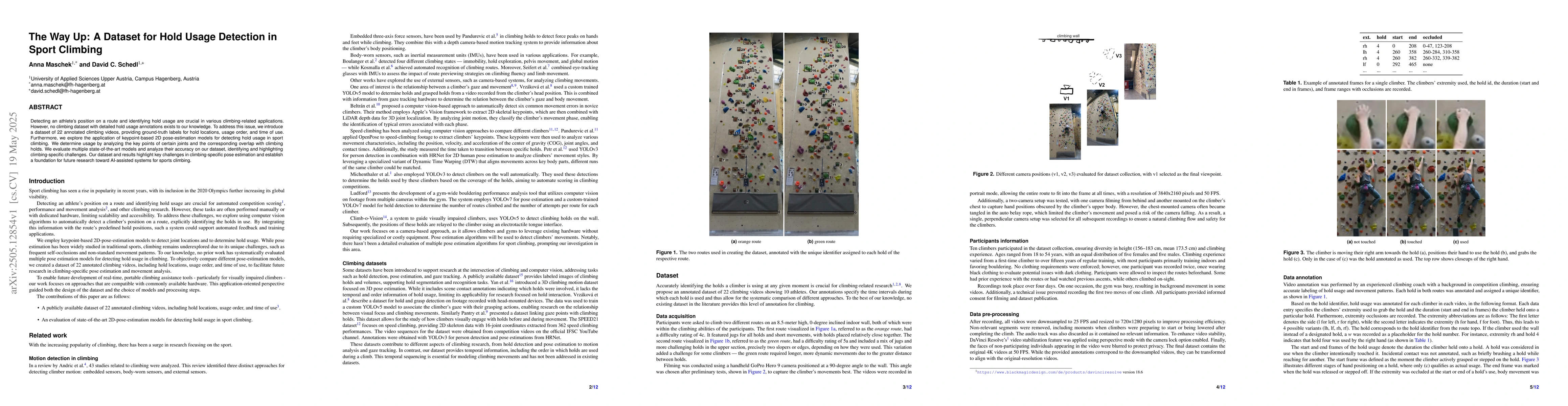 The paper presents 'The Way Up' dataset and evaluates keypoint-based 2D pose-estimation models for hold usage detection in sport climbing.