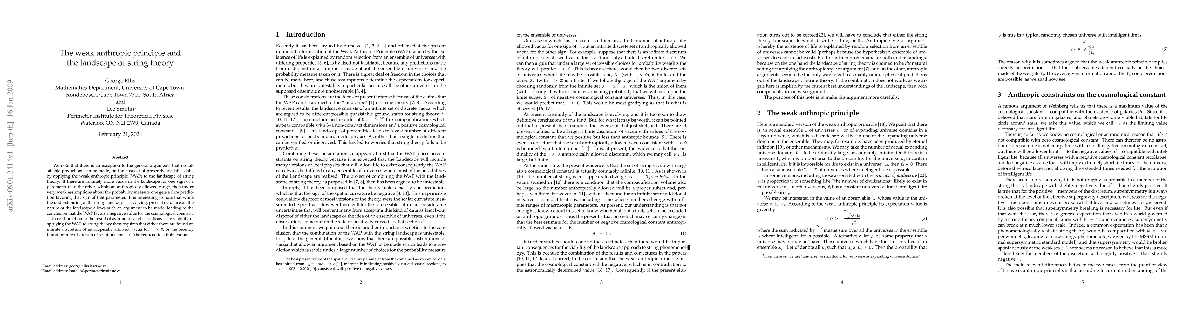 This work distinguishes itself by identifying an exception to the common belief that no falsifiable predictions can be made by applying the weak anthropic principle to string theory, thereby offering a unique perspective on the interplay between anthropic reasoning and theoretical physics.