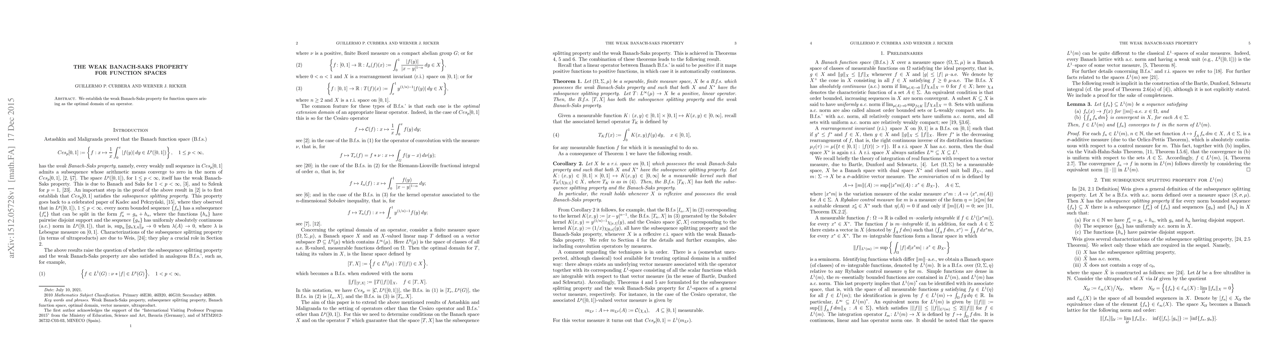 The paper introduces and proves a theorem concerning the weak Banach-Saks property for function spaces derived from optimal domains of operators, leveraging the subsequences splitting property and uniform absolute continuity of the range of a vector measure.