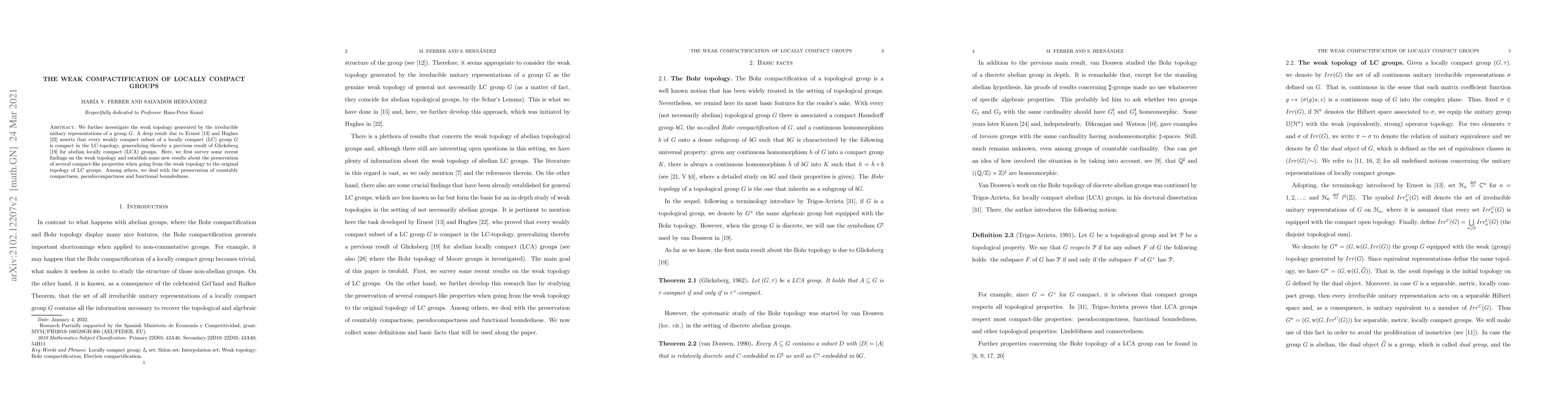 We further investigate the weak topology generated by the irreducible unitary representations of a group $G$. A deep result due to Ernest \cite{Ernest1971} and Hughes \cite{Hughes1973} asserts that every weakly compact subset of a locally compact (LC) group $G$ is compact in the LC-topology, generalizing thereby a previous result of Glicksberg \cite{glicks1962} for abelian locally compact (LCA) groups. Here, we first survey some recent findings on the weak topology and establish some new results about the preservation of several compact-like properties when going from the weak topology to the original topology of LC groups. Among others, we deal with the preservation of countably compactness, pseudocompactness and functional boundedness.