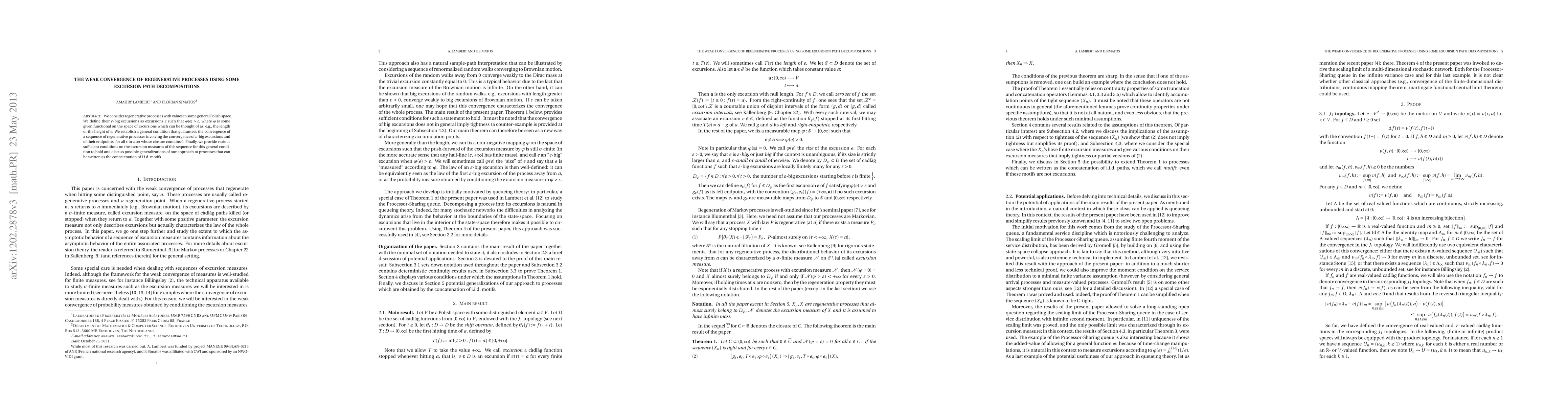 This paper investigates the weak convergence of regenerative processes in Polish spaces, focusing on \epsilon-big excursions defined by a given functional. It establishes a general condition for the convergence of sequences of these processes and provides sufficient conditions on their excursion measures.