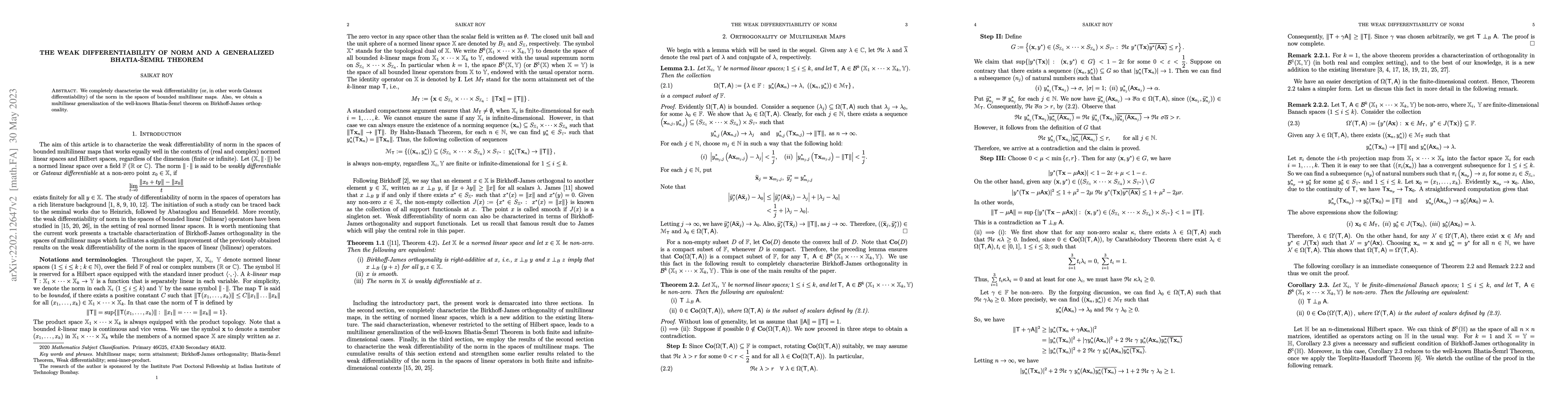 This paper characterizes the weak differentiability of the norm in bounded multilinear maps and presents a multilinear extension of the Bhatia-\v{S}emrl theorem concerning Birkhoff-James orthogonality.
