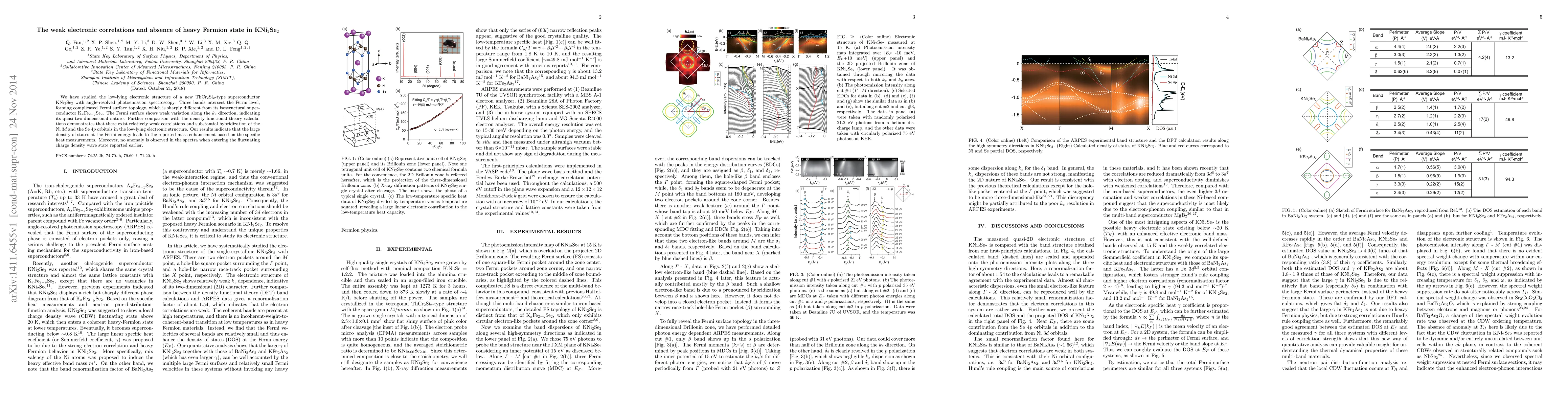 This study reveals that KNi$_2$Se$_2$ exhibits a quasi-two-dimensional Fermi surface with weak electronic correlations and substantial Ni 3$d$ and Se 4$p$ orbital hybridization, contrasting with the heavy Fermion state in K$_x$Fe$_{2-y}$Se$_2$. Despite the large density of states at the Fermi level, no heavy Fermion state or anomalies are observed in the spectra.