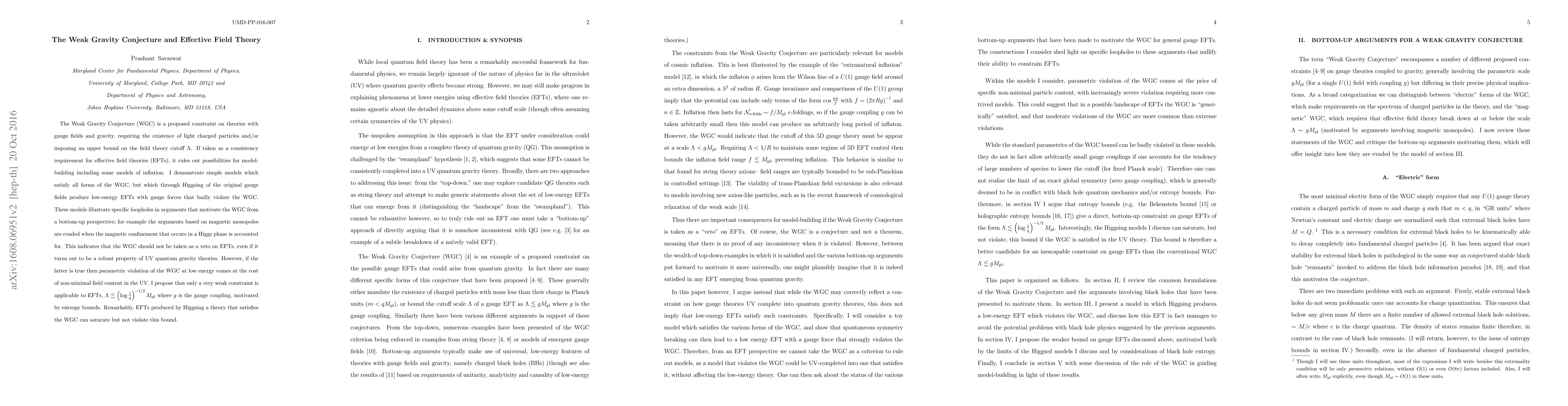 The Weak Gravity Conjecture (WGC) is a proposed constraint on theories with gauge fields and gravity, requiring the existence of light charged particles and/or imposing an upper bound on the field theory cutoff $\Lambda$. If taken as a consistency requirement for effective field theories (EFTs), it rules out possibilities for model-building including some models of inflation. I demonstrate simple models which satisfy all forms of the WGC, but which through Higgsing of the original gauge fields produce low-energy EFTs with gauge forces that badly violate the WGC. These models illustrate specific loopholes in arguments that motivate the WGC from a bottom-up perspective; for example the arguments based on magnetic monopoles are evaded when the magnetic confinement that occurs in a Higgs phase is accounted for. This indicates that the WGC should not be taken as a veto on EFTs, even if it turns out to be a robust property of UV quantum gravity theories. However, if the latter is true then parametric violation of the WGC at low energy comes at the cost of non-minimal field content in the UV. I propose that only a very weak constraint is applicable to EFTs, $\Lambda \lesssim \left(-\log g \right)^{-1/2} M_\text{pl}$ where $g$ is the gauge coupling, motivated by entropy bounds. Remarkably, EFTs produced by Higgsing a theory that satisfies the WGC can saturate but not violate this bound.