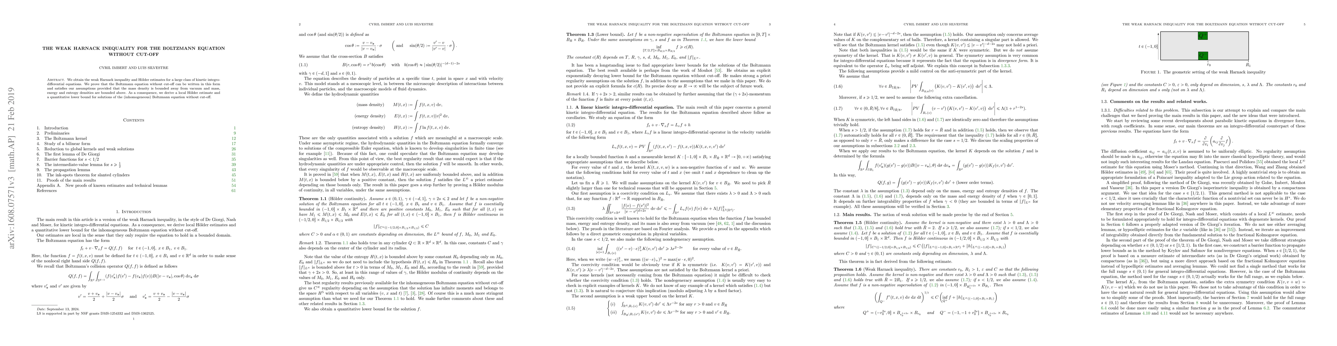 This paper establishes the weak Harnack inequality and H\"older estimates for kinetic integro-differential equations, showing that the Boltzmann equation without cut-off fits these criteria under bounded mass, energy, and entropy densities. It also derives local H\"older estimates and a quantitative lower bound for its solutions.