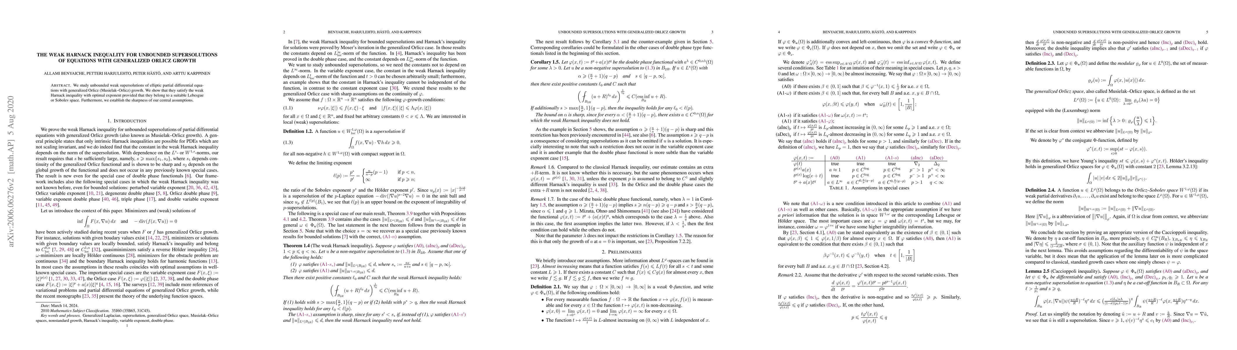 This paper investigates unbounded weak supersolutions of elliptic PDEs with generalized Orlicz growth, proving they satisfy the weak Harnack inequality with optimal exponent under suitable Lebesgue or Sobolev space conditions. The authors also demonstrate the sharpness of their central assumptions.