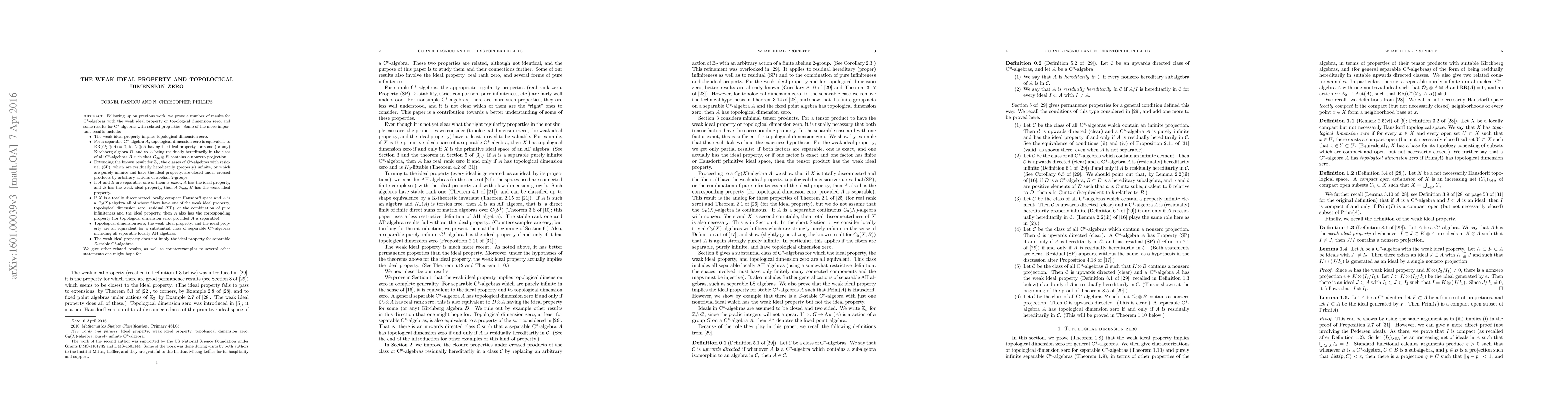Following up on previous work, we prove a number of results for C*-algebras with the weak ideal property or topological dimension zero, and some results for C*-algebras with related properties. Some of the more important results include: The weak ideal property implies topological dimension zero. For a separable C*-algebra~A, topological dimension zero is equivalent to RR (O_2 \otimes A) = 0, to D \otimes A having the ideal property for some (or any) Kirchberg algebra~D, and to A being residually hereditarily in the class of all C*-algebras B such that O_{\infty} \otimes B contains a nonzero projection. Extending the known result for Z_2, the classes of C*-algebras with topological dimension zero, with the weak ideal property, and with residual (SP) are closed under crossed products by arbitrary actions of abelian 2-groups. If A and B are separable, one of them is exact, A has the ideal property, and B has the weak ideal property, then A \otimes_{min} B has the weak ideal property. If X is a totally disconnected locally compact Hausdorff space and A is a C_0 (X)-algebra all of whose fibers have one of the weak ideal property, topological dimension zero, residual (SP), or the combination of pure infiniteness and the ideal property, then A also has the corresponding property (for topological dimension zero, provided A is separable). Topological dimension zero, the weak ideal property, and the ideal property are all equivalent for a substantial class of separable C*-algebras including all separable locally AH algebras. The weak ideal property does not imply the ideal property for separable Z-stable C*-algebras. We give other related results, as well as counterexamples to several other statements one might hope for.