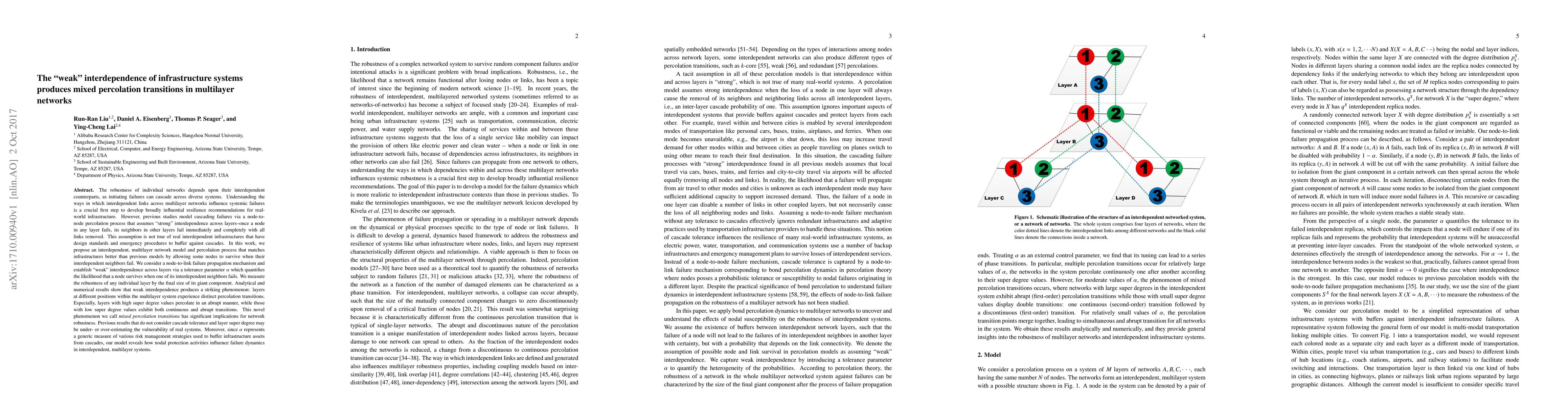 This paper proposes a multilayer network model for interdependent infrastructure systems, introducing "weak" interdependence via a tolerance parameter $\alpha$. It reveals mixed percolation transitions, where layers with different super degree values exhibit distinct failure dynamics, challenging previous assumptions about system vulnerability.