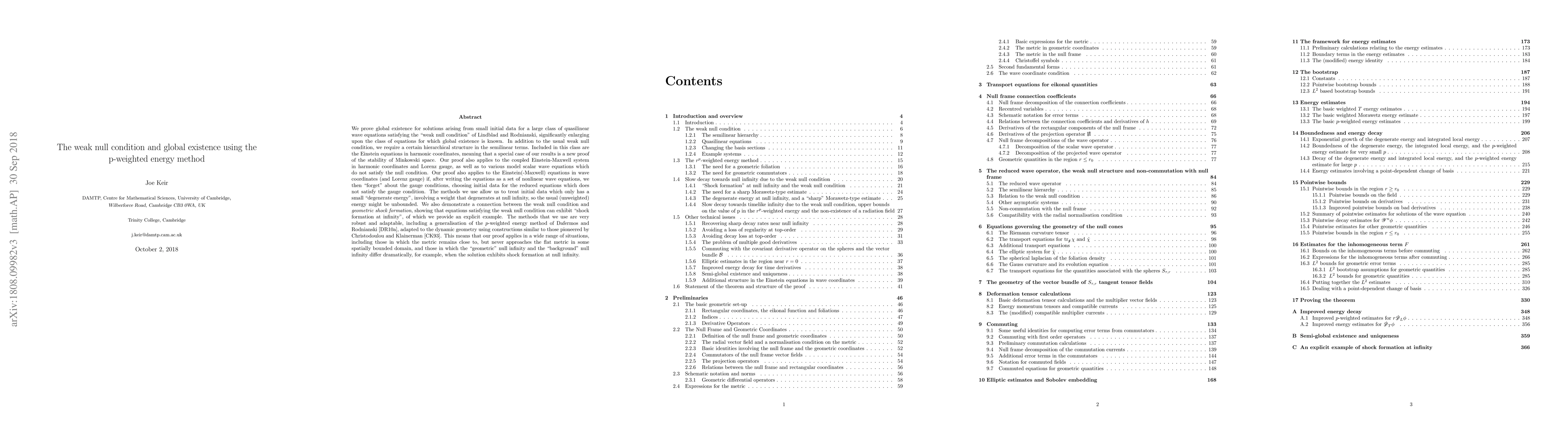 This paper proves global existence for solutions of quasilinear wave equations under the weak null condition, significantly expanding the range of applicable equations. The authors utilize a generalized p-weighted energy method and demonstrate stability for the Einstein equations in harmonic coordinates, including the coupled Einstein-Maxwell system.