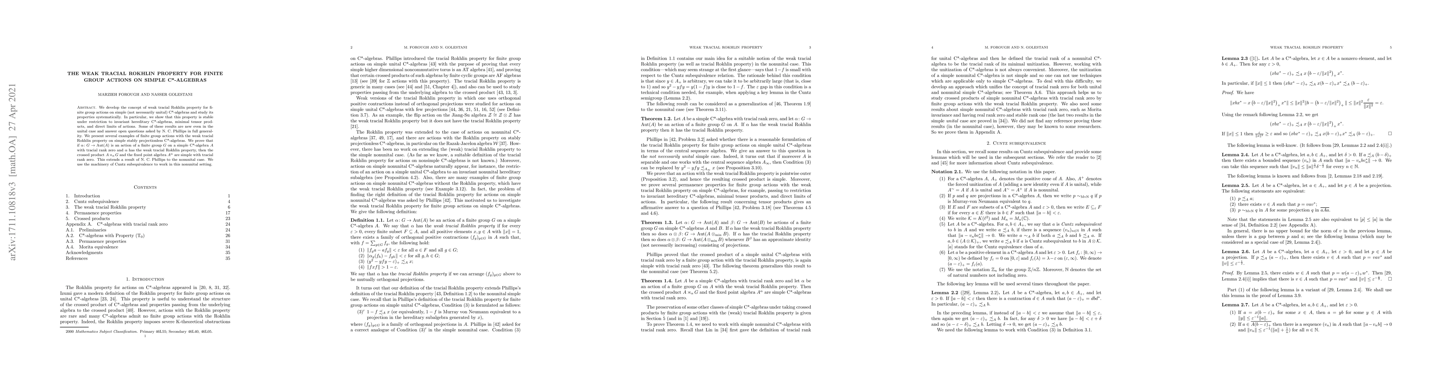 This paper introduces the weak tracial Rokhlin property for finite group actions on simple C*-algebras, demonstrating its stability under various operations and proving its implications for tracial rank. It extends known results to nonunital algebras and provides new examples and applications.