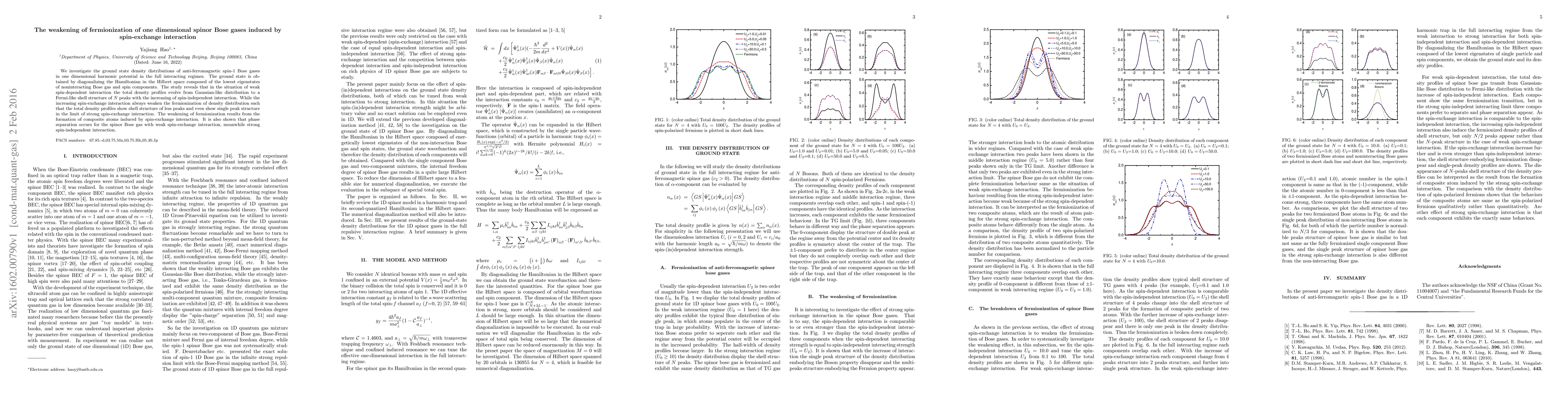 We investigate the ground state density distributions of anti-ferromagnetic spin-1 Bose gases in one dimensional harmonic potential in the full interacting regimes. The ground state is obtained by diagonalizing the Hamiltonian in the Hilbert space composed of the lowest eigenstates of noninteracting Bose gas and spin components. The study reveals that in the situation of weak spin-dependent interaction the total density profiles evolve from Gaussian-like distribution to a Fermi-like shell structure of $N$ peaks with the increasing of spin-independent interaction. While the increasing spin-exchange interaction always weaken the fermionization of density distribution such that the total density profiles show shell structure of less peaks and even show single peak structure in the limit of strong spin-exchange interaction. The weakening of fermionization results from the formation of composite atoms induced by spin-exchange interaction. It is also shown that phase separation occurs for the spinor Bose gas with weak spin-exchange interaction, meanwhile strong spin-independent interaction.