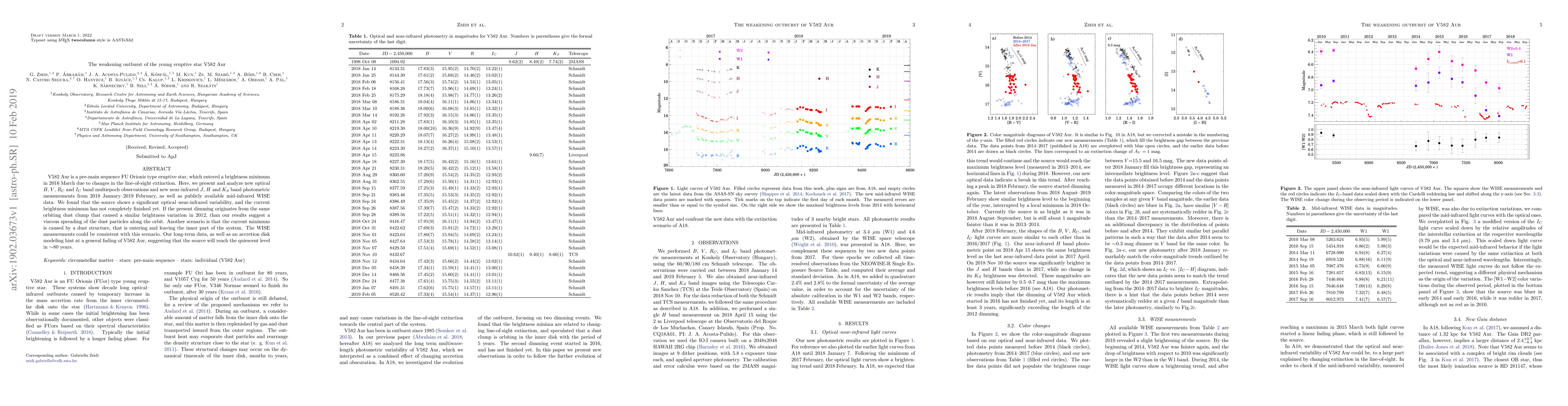 V582 Aur is a pre-main sequence FU Orionis type eruptive star, which entered a brightness minimum in 2016 March due to changes in the line-of-sight extinction. Here, we present and analyze new optical $B$, $V$, $R_C$ and $I_C$ band multiepoch observations and new near-infrared $J$, $H$ and $K_S$ band photometric measurements from 2018 January$-$2019 February, as well as publicly available mid-infrared WISE data. We found that the source shows a significant optical$-$near-infrared variability, and the current brightness minimum has not completely finished yet. If the present dimming originates from the same orbiting dust clump that caused a similar brightness variation in 2012, than our results suggest a viscous spreading of the dust particles along the orbit. Another scenario is that the current minimum is caused by a dust structure, that is entering and leaving the inner part of the system. The WISE measurements could be consistent with this scenario. Our long-term data, as well as an accretion disk modeling hint at a general fading of V582 Aur, suggesting that the source will reach the quiescent level in $\sim$80 years.
