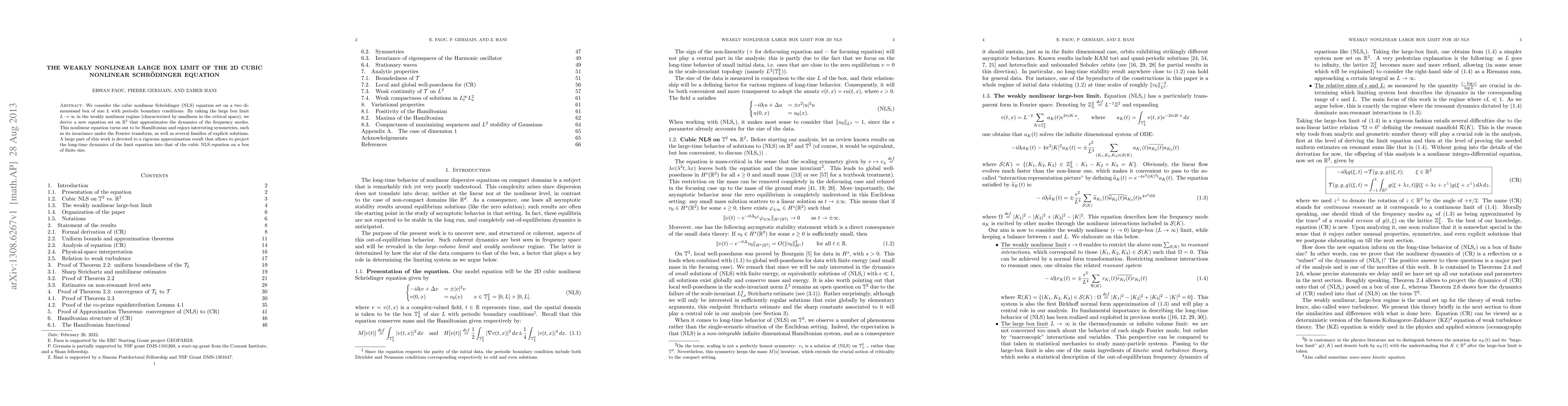 We consider the cubic nonlinear Schr\"odinger (NLS) equation set on a two dimensional box of size $L$ with periodic boundary conditions. By taking the large box limit $L \to \infty$ in the weakly nonlinear regime (characterized by smallness in the critical space), we derive a new equation set on $\R^2$ that approximates the dynamics of the frequency modes. This nonlinear equation turns out to be Hamiltonian and enjoys interesting symmetries, such as its invariance under Fourier transform, as well as several families of explicit solutions. A large part of this work is devoted to a rigorous approximation result that allows to project the long-time dynamics of the limit equation into that of the cubic NLS equation on a box of finite size.