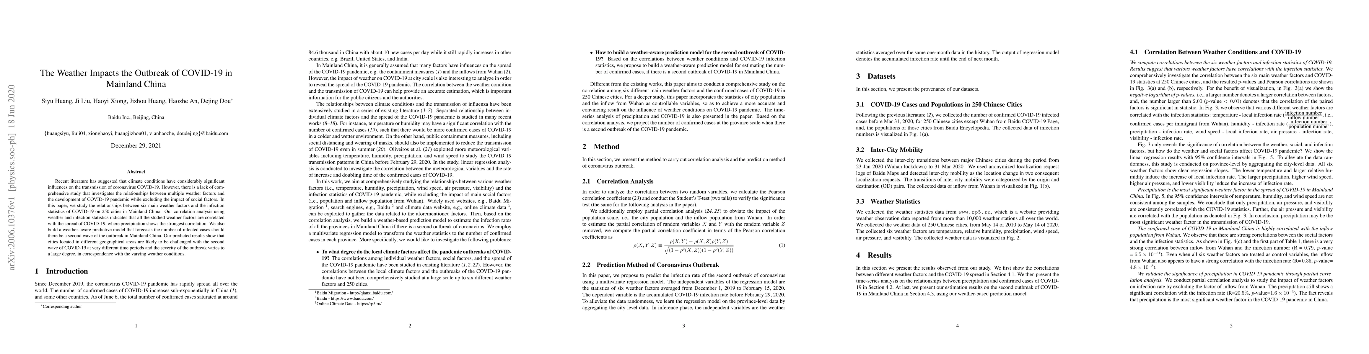 This study investigates the relationship between six weather factors and COVID-19 infection statistics across 250 cities in Mainland China, finding significant correlations, with precipitation showing the strongest link. It also develops a predictive model to forecast potential second-wave outbreaks, revealing varying outbreak timings and severities based on regional weather conditions.