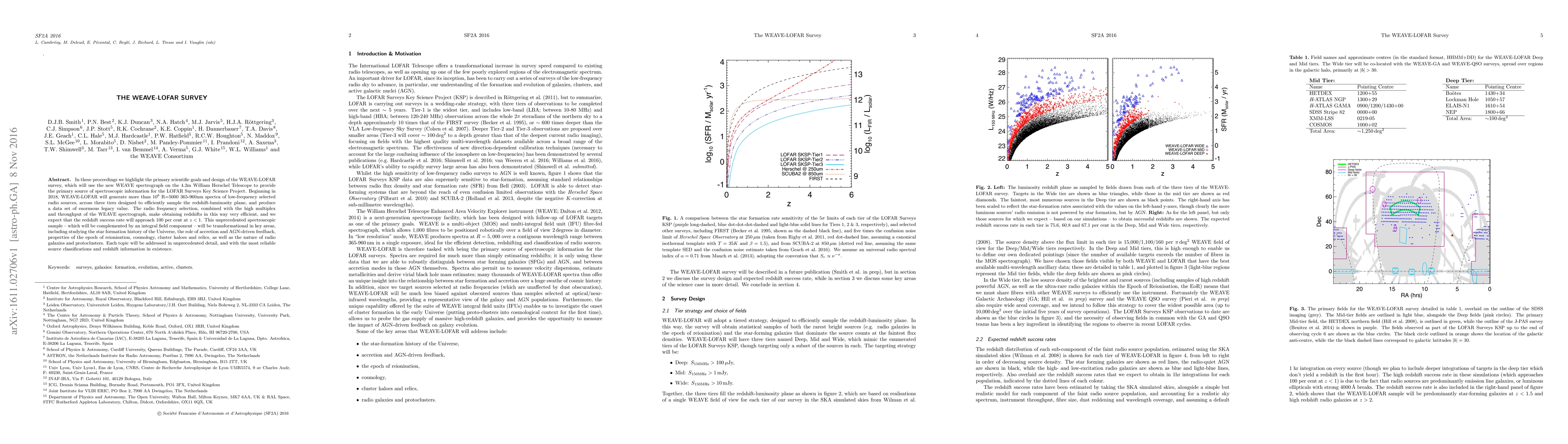 The WEAVE-LOFAR survey utilizes the WEAVE spectrograph on the 4.2m William Herschel Telescope to obtain spectroscopic information for low-frequency selected radio sources, aiming to efficiently sample the redshift-luminosity plane with over 10^6 R=5000 365-960 nm spectra.