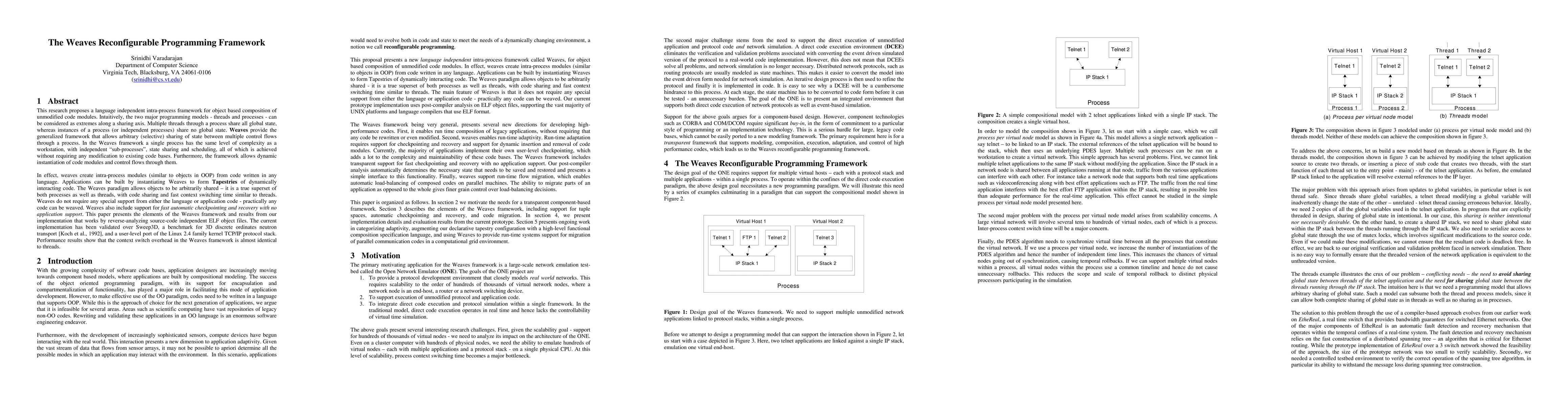 Weaves proposes a language-independent framework for reconfigurable programming that allows selective sharing of state between multiple control flows within a process, enabling flexible and fast intra-process module creation without modifying existing code bases.