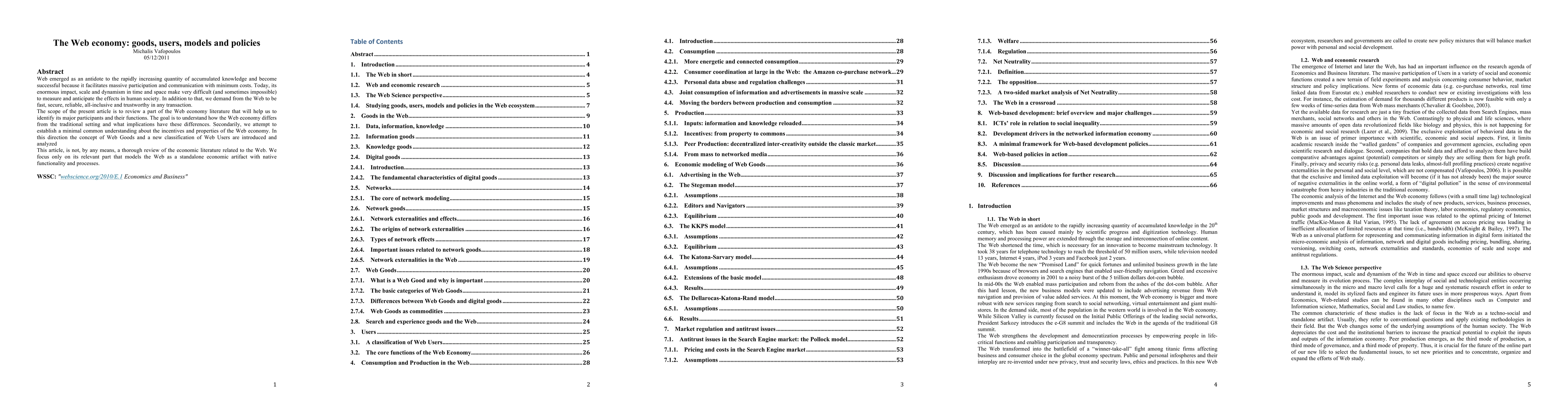 This paper reviews the Web economy literature to understand its participants, functions, and implications. It introduces a new classification of Web Users and examines the incentives and properties of the Web economy, highlighting its differences from traditional settings.